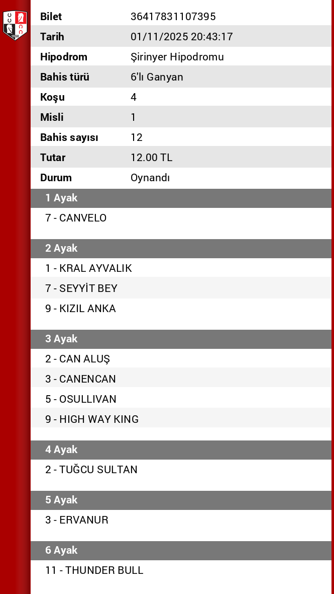 Altılı 1 — Tarih: 01.11.2025 | Altılı Başlangıç: 19:15 | Pist: İzmir