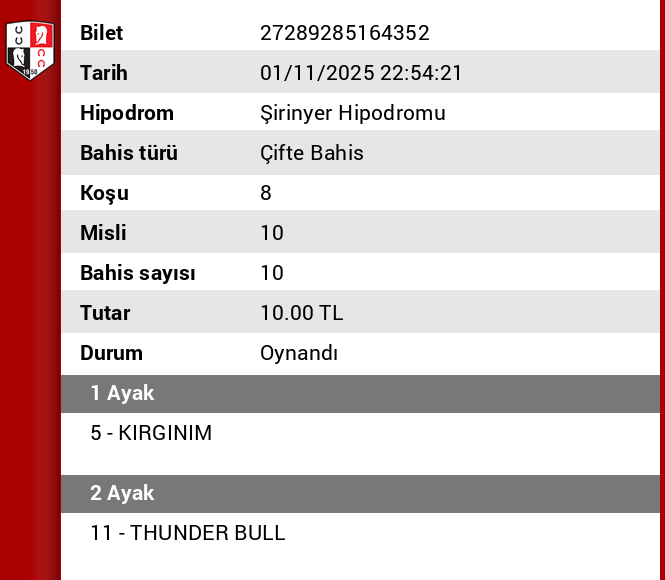 8.KOŞU: 5-KIRGINIM kağıt üzerinde önde; ufak risklerle birlikte, 2-DEKÇİ BEY tutulanlara pusu kurabilecek tipte, 6-HAYALİNOĞLU kuponlarda bulunsun, 9-TUĞÇEYİM fotoya kalırsa pişman olmamak için eklenir, 3-ERVANUR ihtiyat payı olarak eklenir, 1-İLTERSOYLU fotoya kalırsa pişman olmamak için eklenir ve 4-İKİGAİ yakın rakip ilk bakışta ayrılıyor; öncelikli tercihim. Kısa sprinti güçlü olan bir adım önde; fakat yol bulmak mesele olacak. Formlar denk; genişleyen kuponlarda HEPSİ.