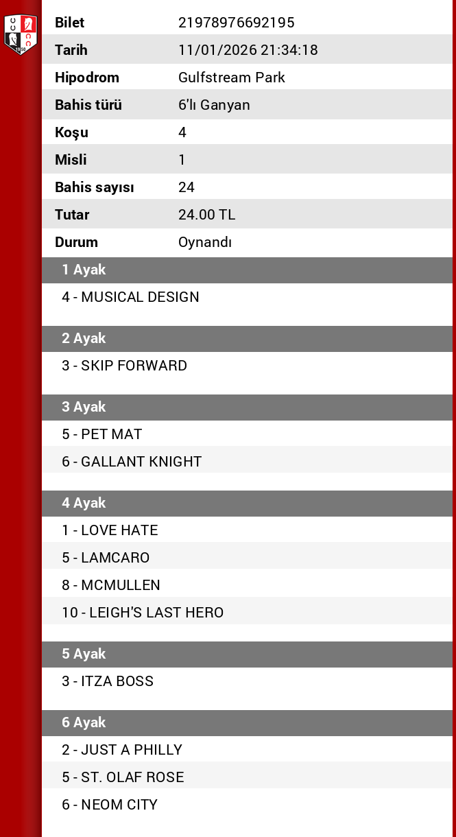 Altılı 1 — Tarih: 11.01.2026 | Altılı Başlangıç: 20:20 | Pist: Gulfstream Park ABD