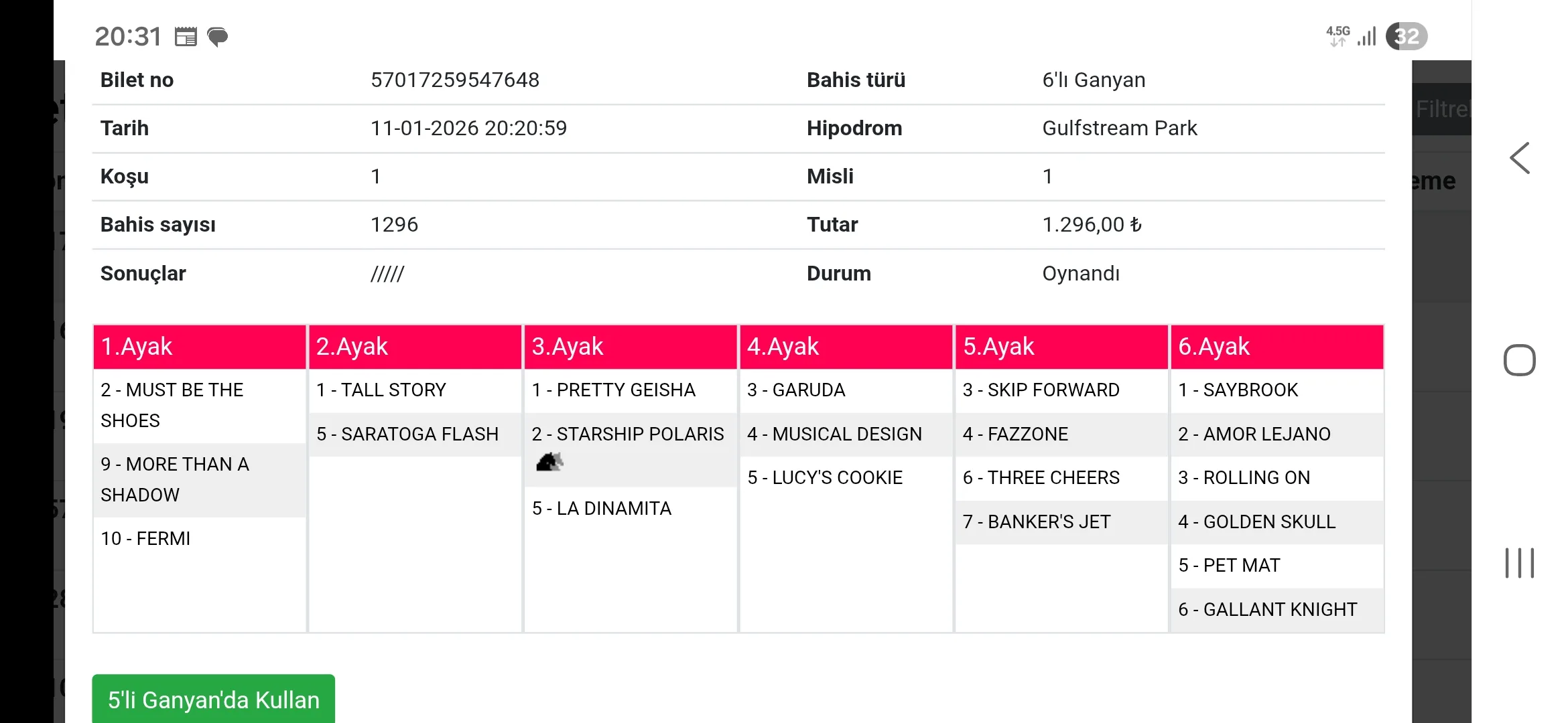 6.KOŞU: 5-PET MAT çok net banko seviyesinde görüyorum.