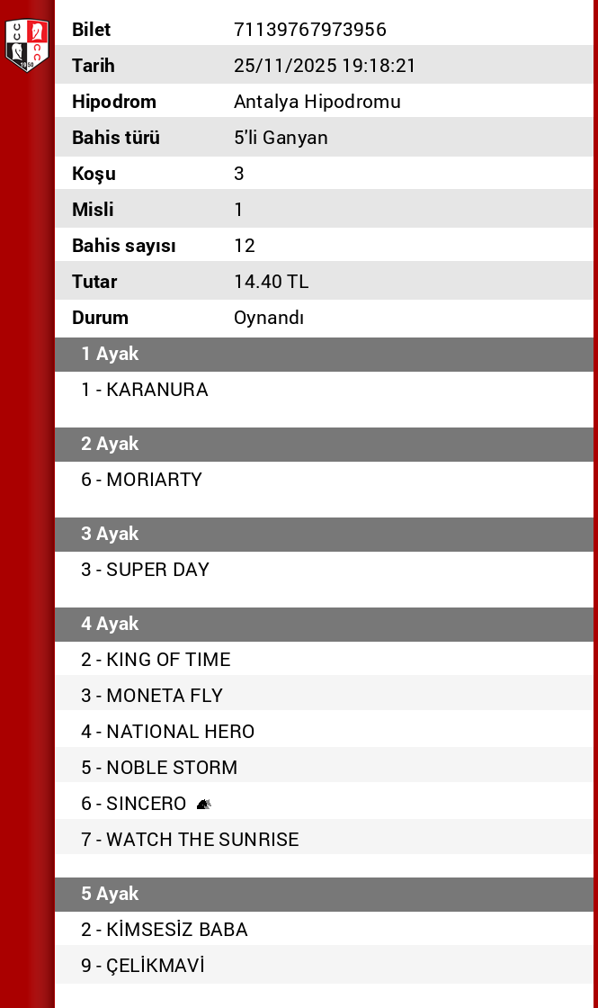 7.KOŞU: 5-GÜNEREN favori, 2-KİMSESİZ BABA sessiz ve derinden gelebilir, 3-SUFLE sessiz ve derinden ve 10-TAŞUCU dengelemek için yumuşak bir sigorta gözümde bir adım önde. Grup denk, küçük hatalar pahalıya patlar; düzlük savaşında sinirler çelik gibi olmalı. Günün akışına göre güvenlik eklemesi mantıklı.