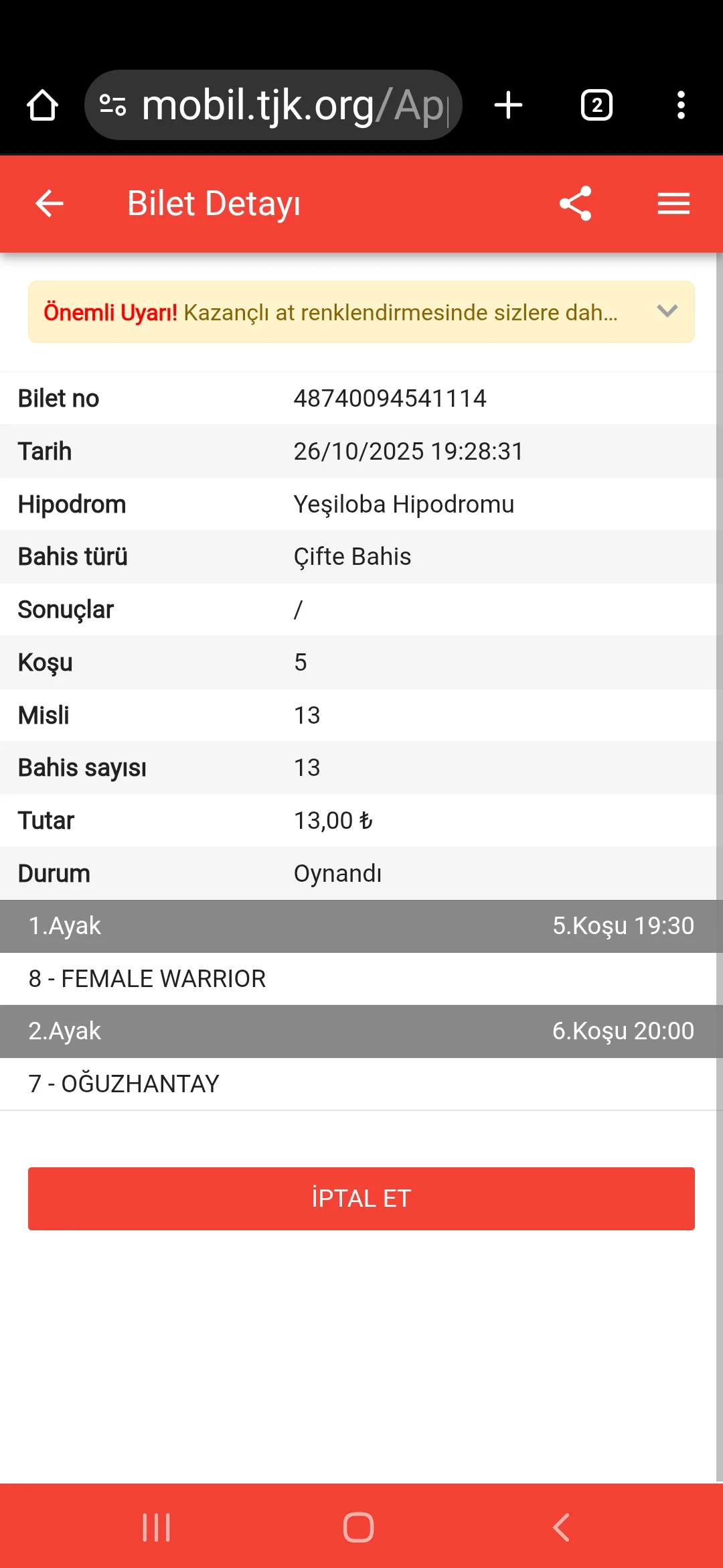 Altılı 2 — Tarih: 26.10.2025 | Altılı Başlangıç: 19:00 | Pist: Adana