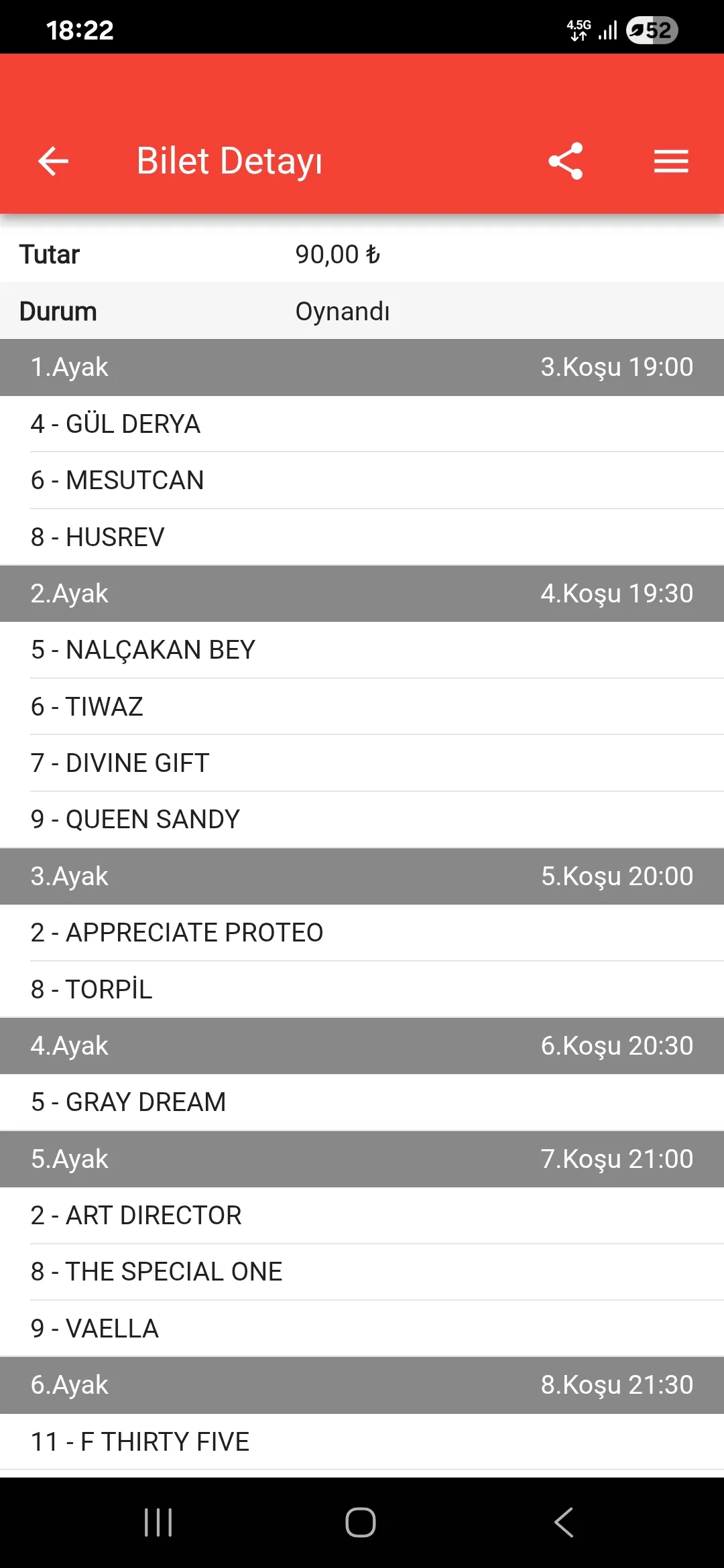Yok Adminim, is arasinda yaptim son 2-3 ayagi rastgele gectim 7’lide, hic yaptigim is degil, yazdigim hicbir at hicbirzaman rastgele yazmam ama 7l’li plase yarim kalmasin yatirayim dedim. sonra siz soyleyince bakinca cidden tırtmış, piyasada yok zaten. Dogru durust bakabilsem 3 at yazdim 5’liye cikartmazdim biliyorsunuz. Kosturmaca mesai icinde kupon yapiyoruz iste :)