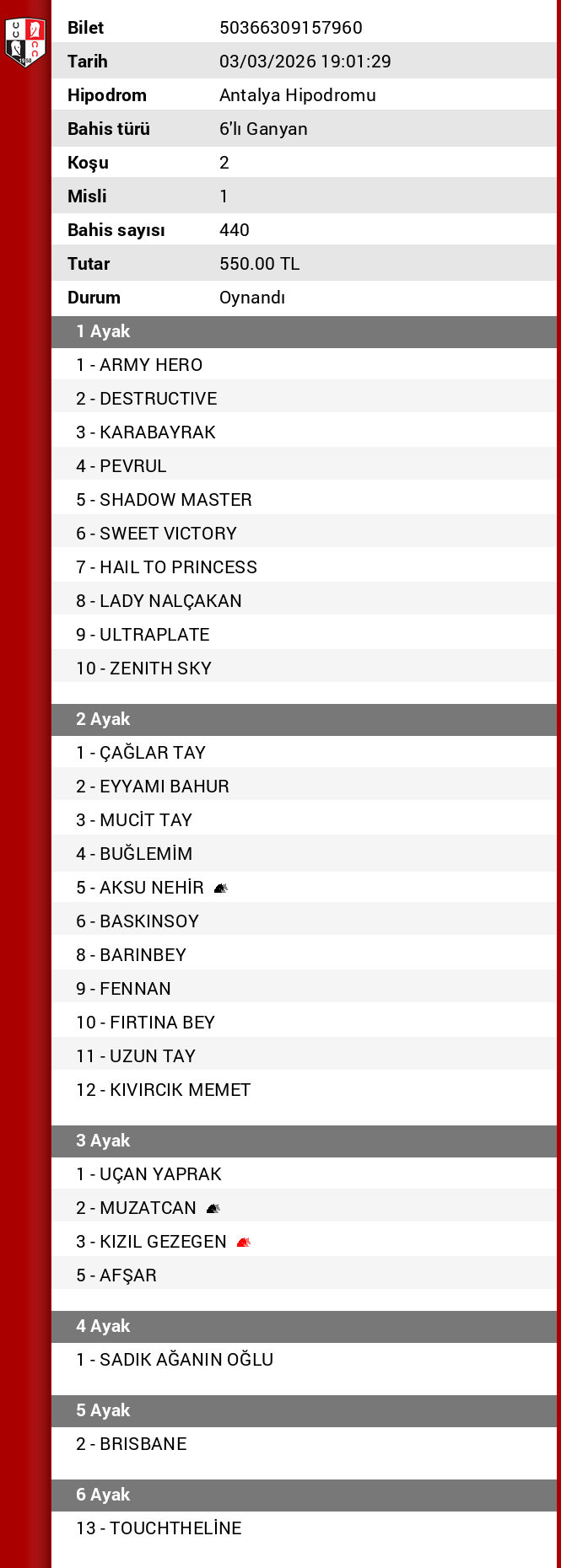 Altılı 1 — Tarih: 03.03.2026 | Altılı Başlangıç: 19:00 | Pist: Antalya