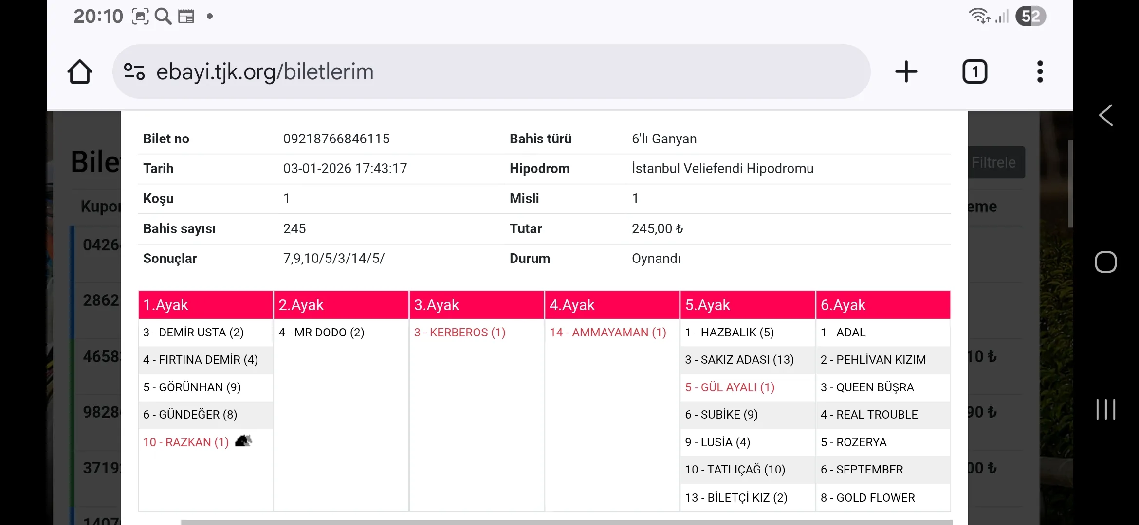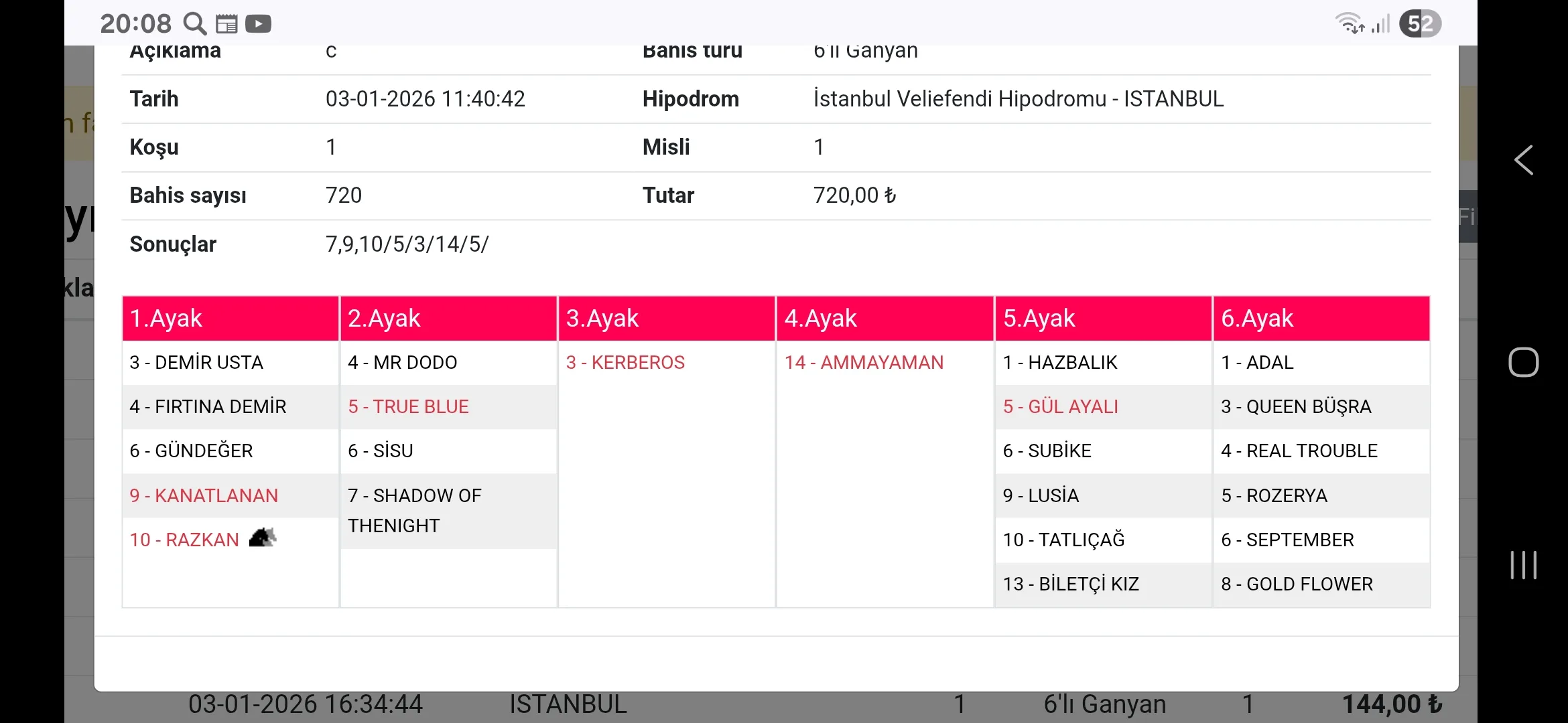 (Algoritma çıkan atlara göre otomatik kupon güncellemektedir. Güncel kupon için Altılı Bülteni sayfamızı ziyaret edin.)