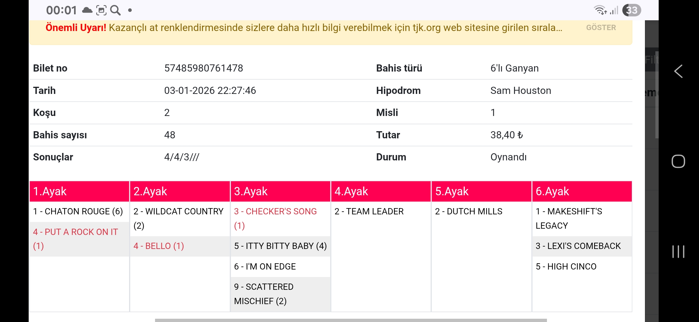 1.KOŞU: 1-BLAZING TIGER listemin başında ve 6-WESEEULATOR uzun galopları dikkat çekici gözümde bir adım önde. Belirsizlik yüksek; geniş oynayanlar için yayma mantıklı.