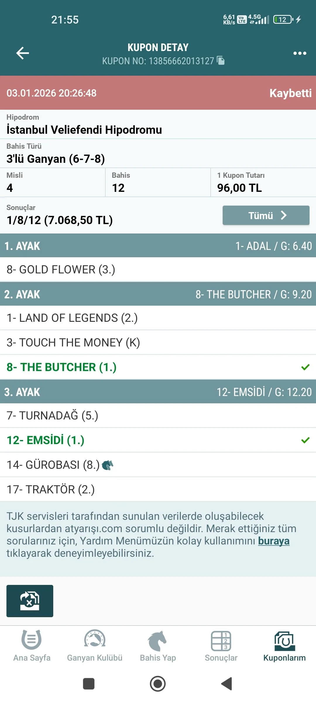 8.KOŞU: 1-AZERİ DAMAT kağıt üzerinde önde; ufak risklerle birlikte, 7-TURNADAĞ tempo bulursa tehdit, 10-ÇAYCI KIZ kuponlarda bulunsun ve 13-EFE METE BEY fotoya kalırsa pişman olmamak için eklenir ilk bakışta ayrılıyor; öncelikli tercihim. Koşu içi trafik şansı belirleyici; sıkışan kaybeder, boşluk bulan yürür. Kırılgan senaryoda +1 şart.