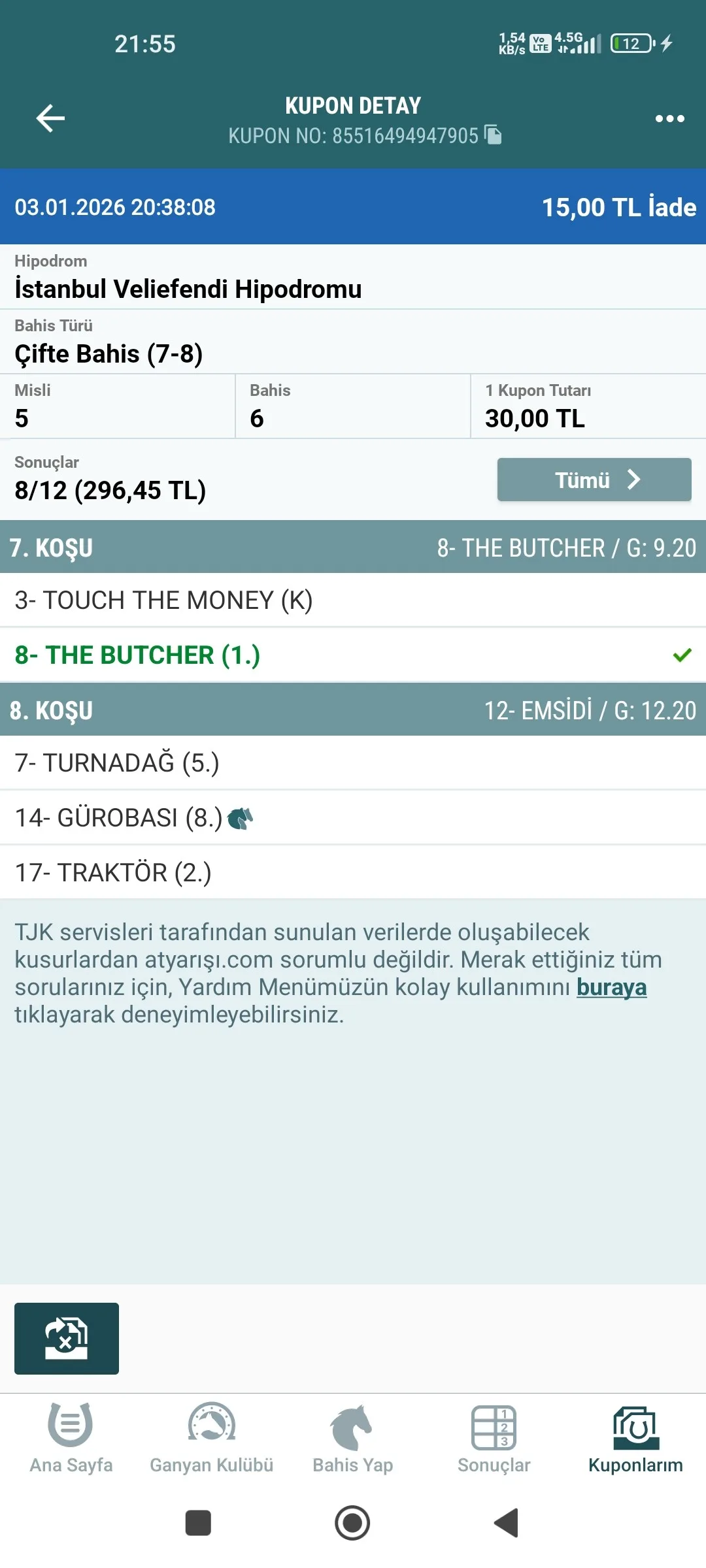 Toplam Kombinasyon: 252 | Kupon Tutarı: 252.00 ₺