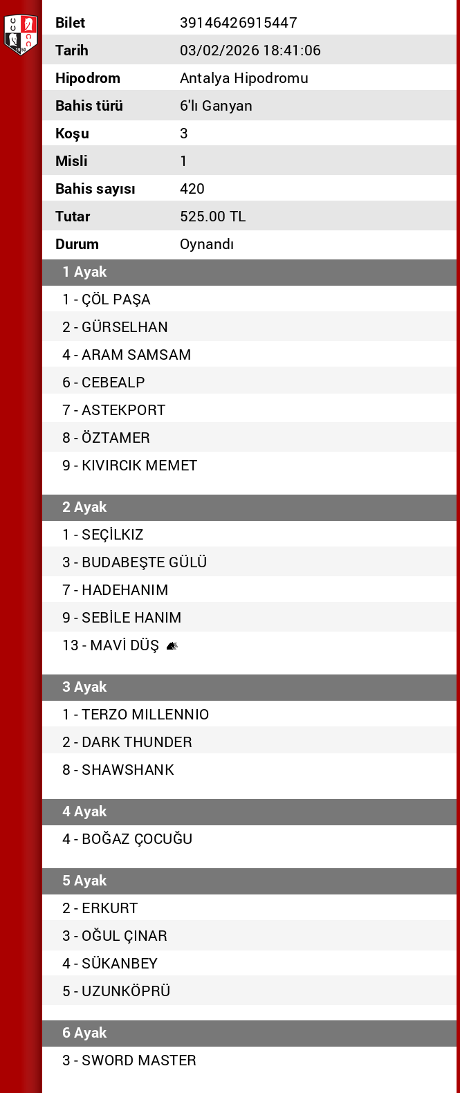 Altılı 1 — Tarih: 03.02.2026 | Altılı Başlangıç: 17:45 | Pist: Antalya