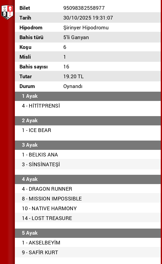 4.KOŞU: 2-TIZ A ROCKET net favori, 10-IRON LION ciddi rakip ve 3-HASKÖY FIRTINASI kuponlarda bulunsun başta düşünülmeli. Start çıkışları kritik önemde.