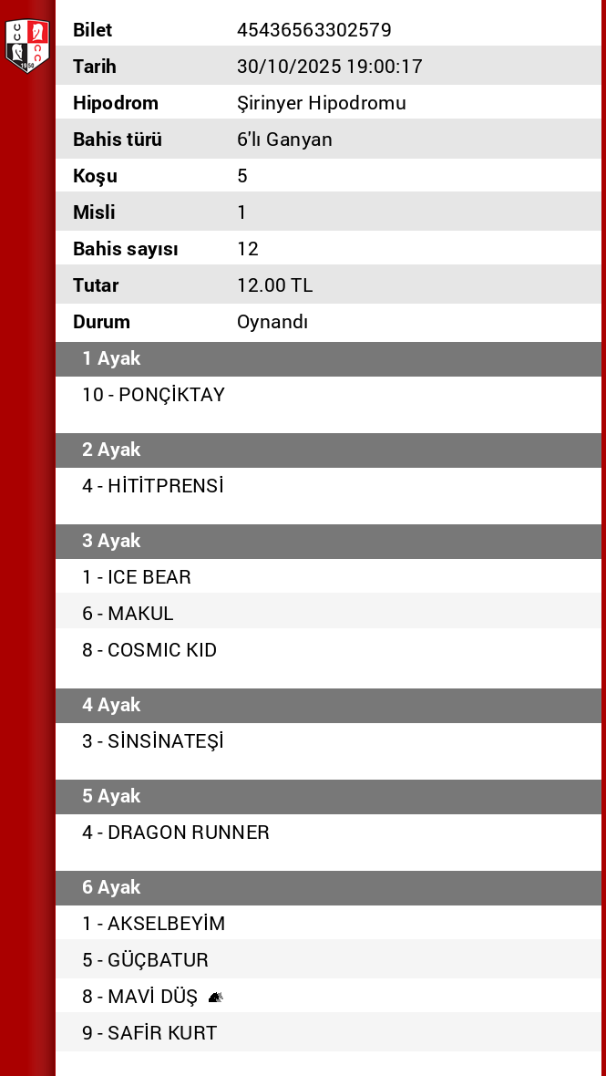 Altılı 1 — Tarih: 30.10.2025 | Altılı Başlangıç: 16:45 | Pist: İzmir