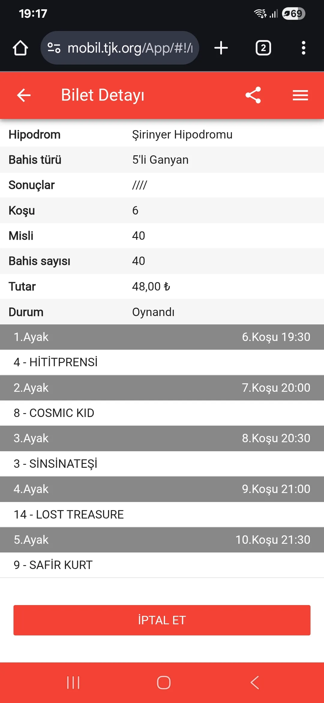 6. Koşusunda 4.HİTİTPRENSİ kesin kazanır dendi