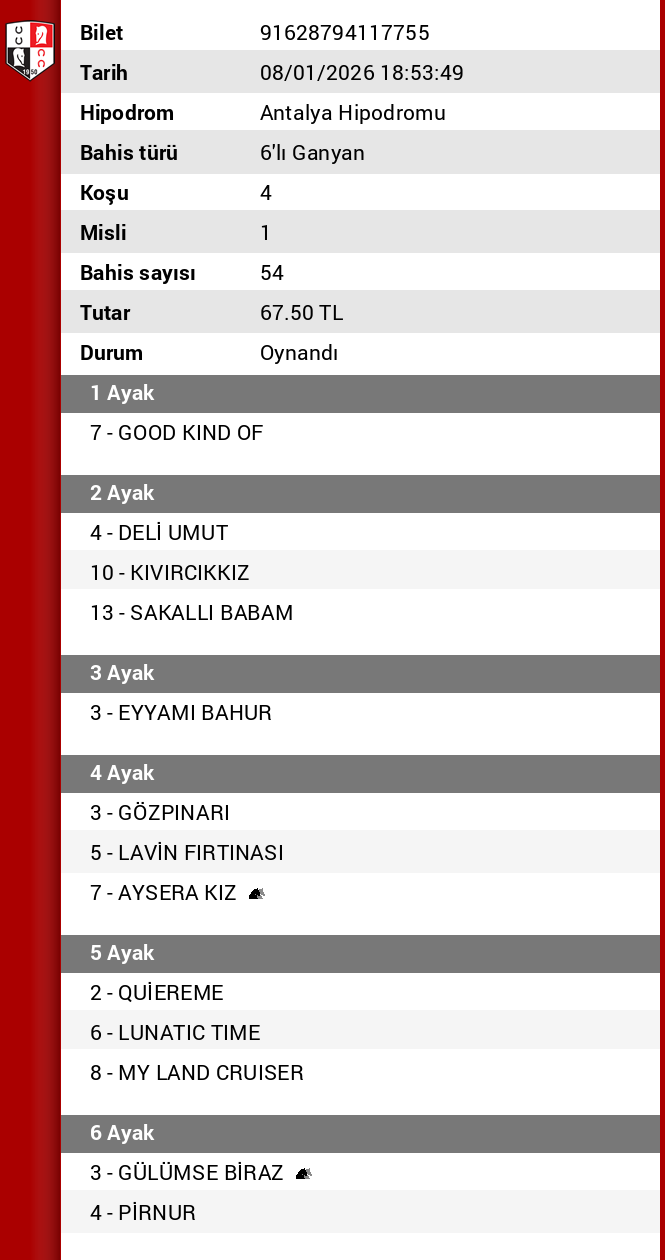 6.KOŞU: 4-GÜNEREN çok net banko seviyesinde görüyorum.