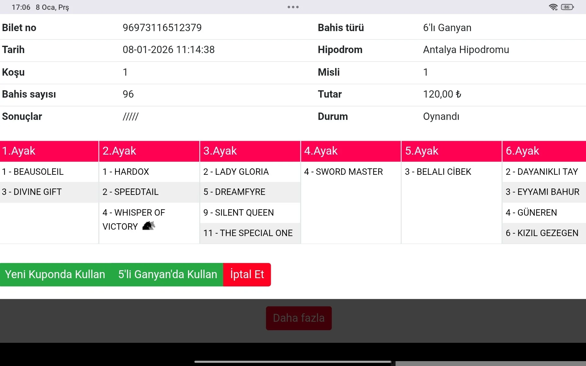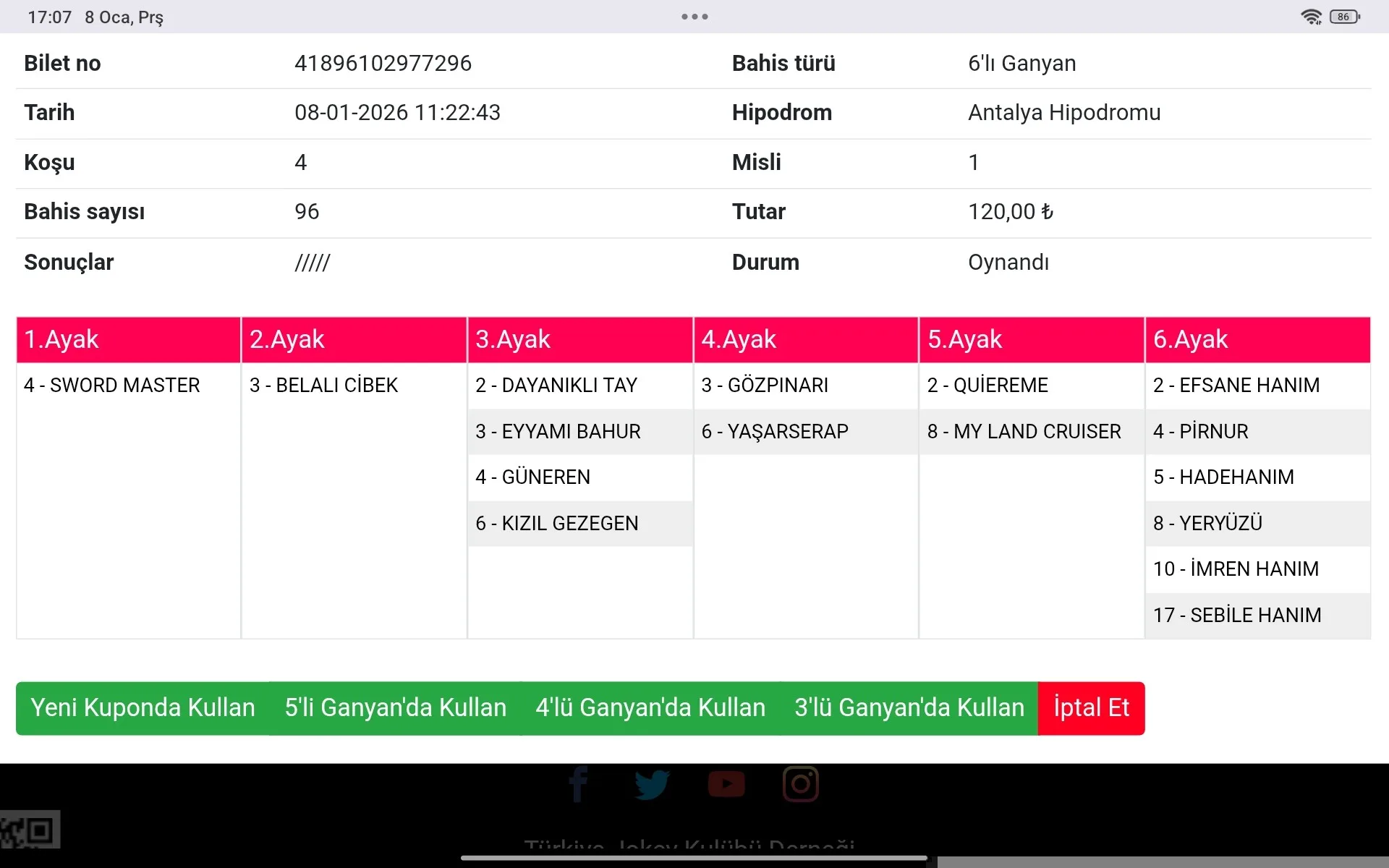 Altılı 1 — Tarih: 08.01.2026 | Altılı Başlangıç: 17:15 | Pist: Antalya
