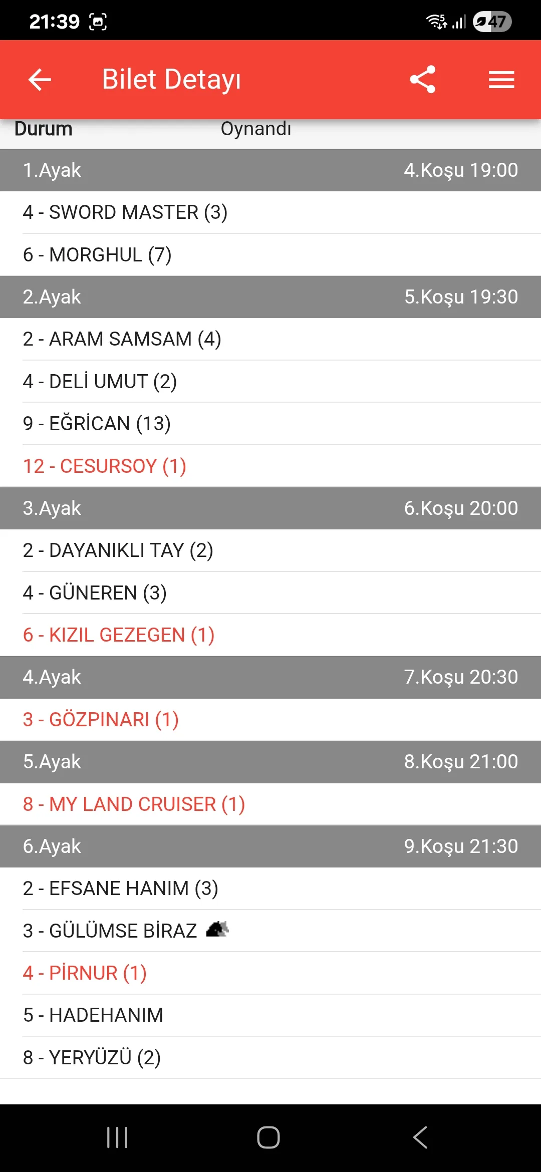 Yarışı paylaşamadim ama 6.lı 5 te kaldı Allah’tandır 5liyi kurtardık