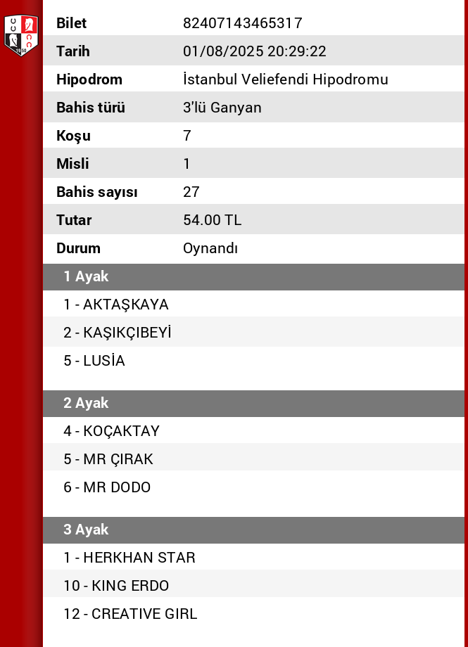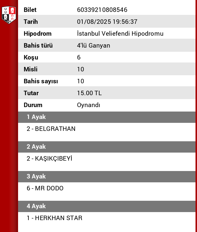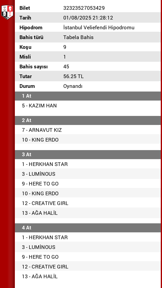 Ağustos ayının ilk yarış günü İSTANBUL / VELİEFENDİ Hipodromundaki 9 Koşulu yarış programında herkese bol şanslar diliyorum.
