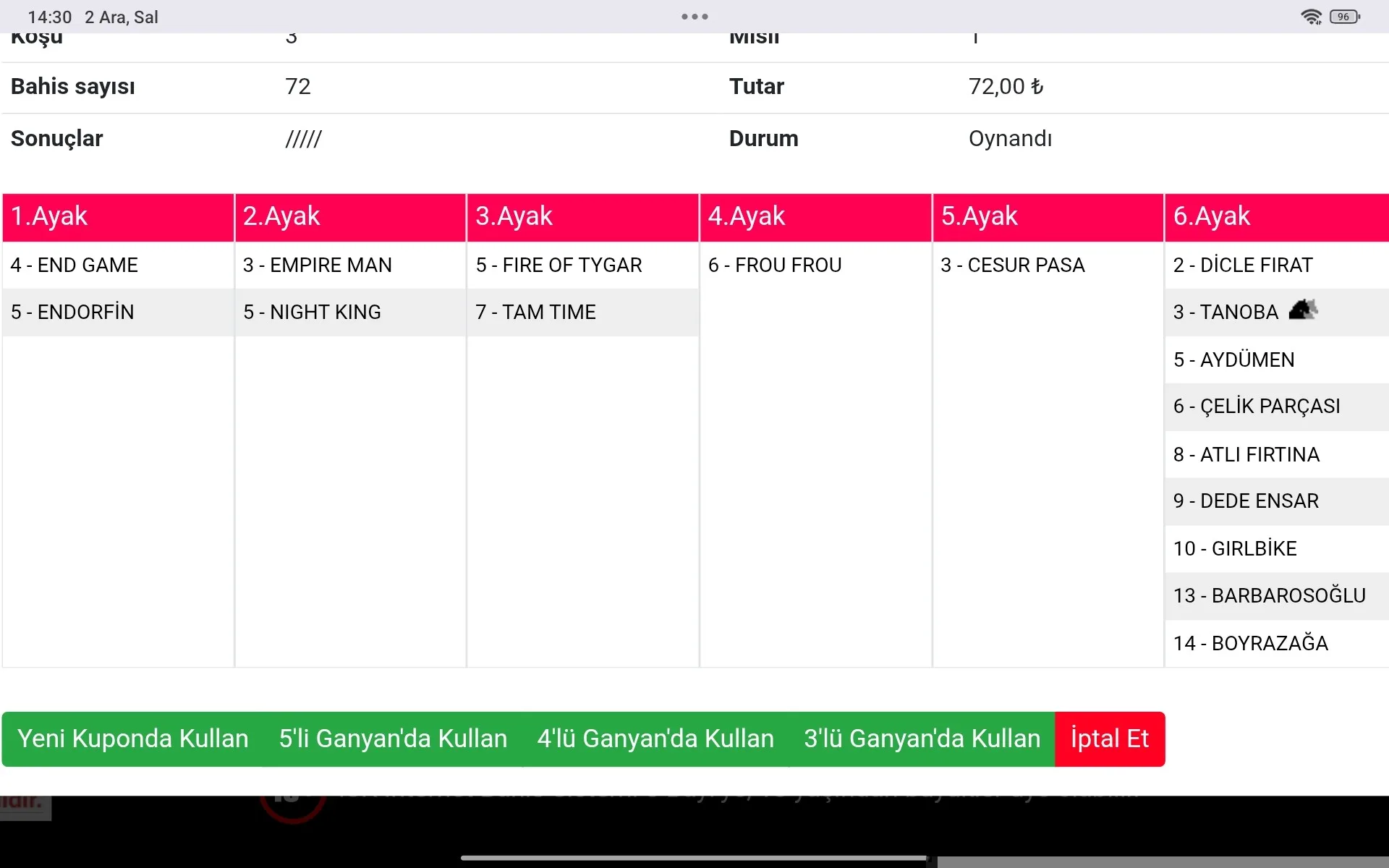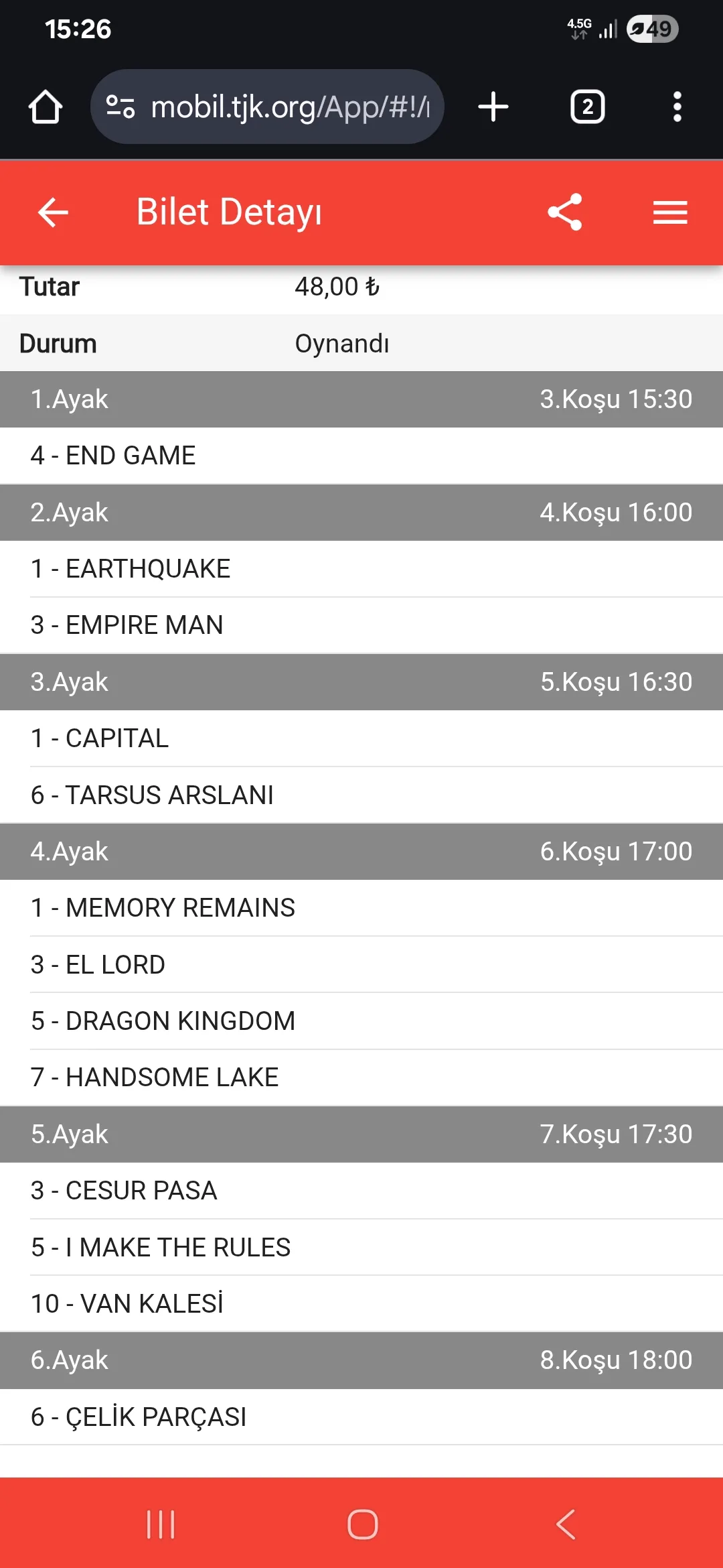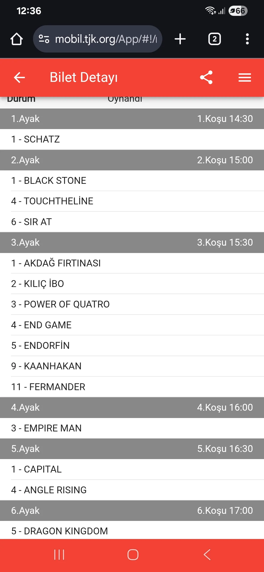 Bilet no 29975501019802 Bahis türü 6’lı Ganyan