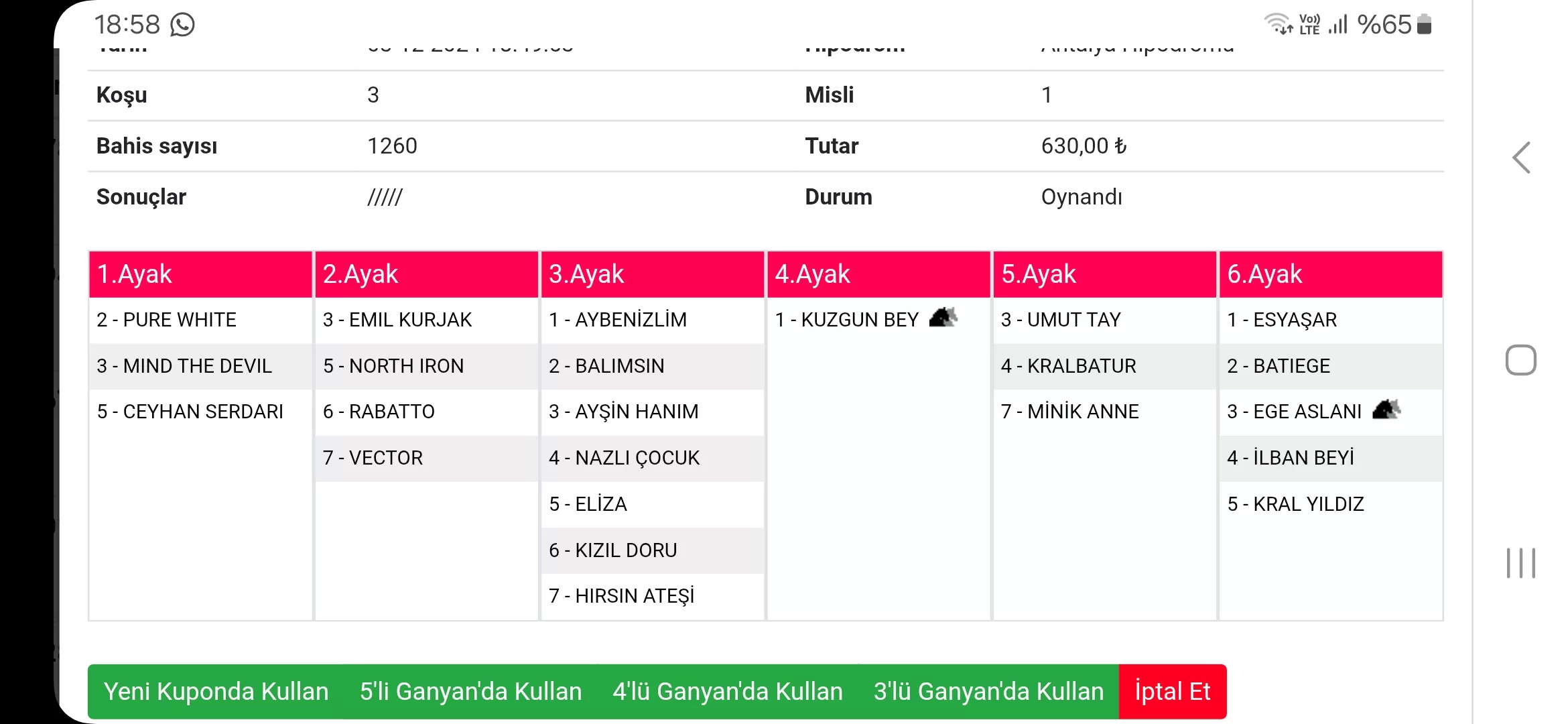 Bordomavi 1200+1400 mesafelerde gününde olursa gecemiyecegi At yok