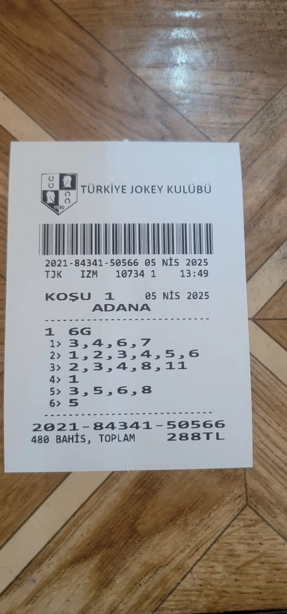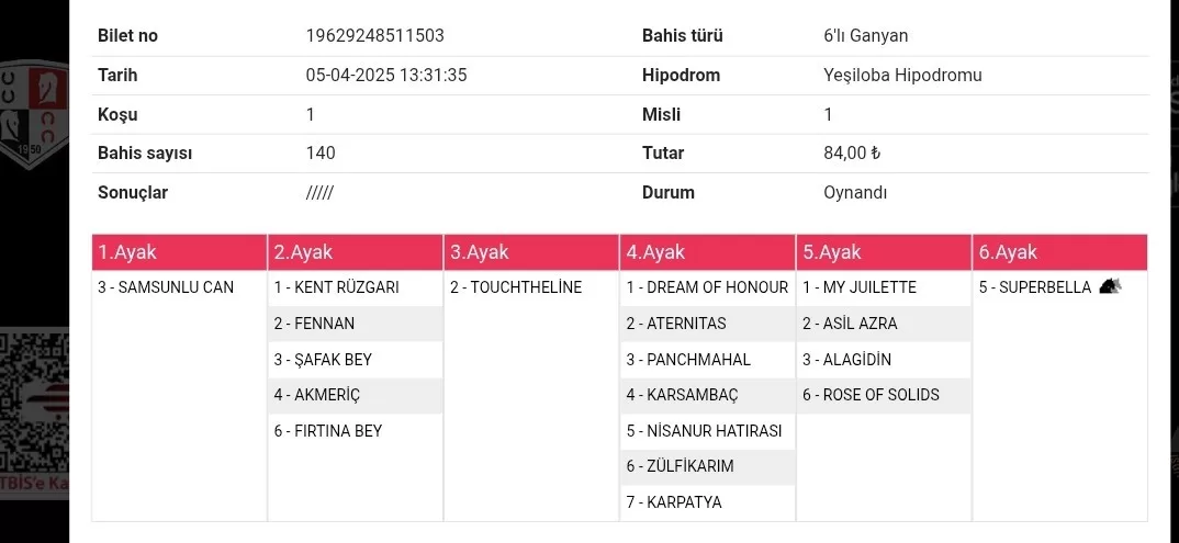 Bilet no 44923758560752 Bahis türü 6’lı Ganyan