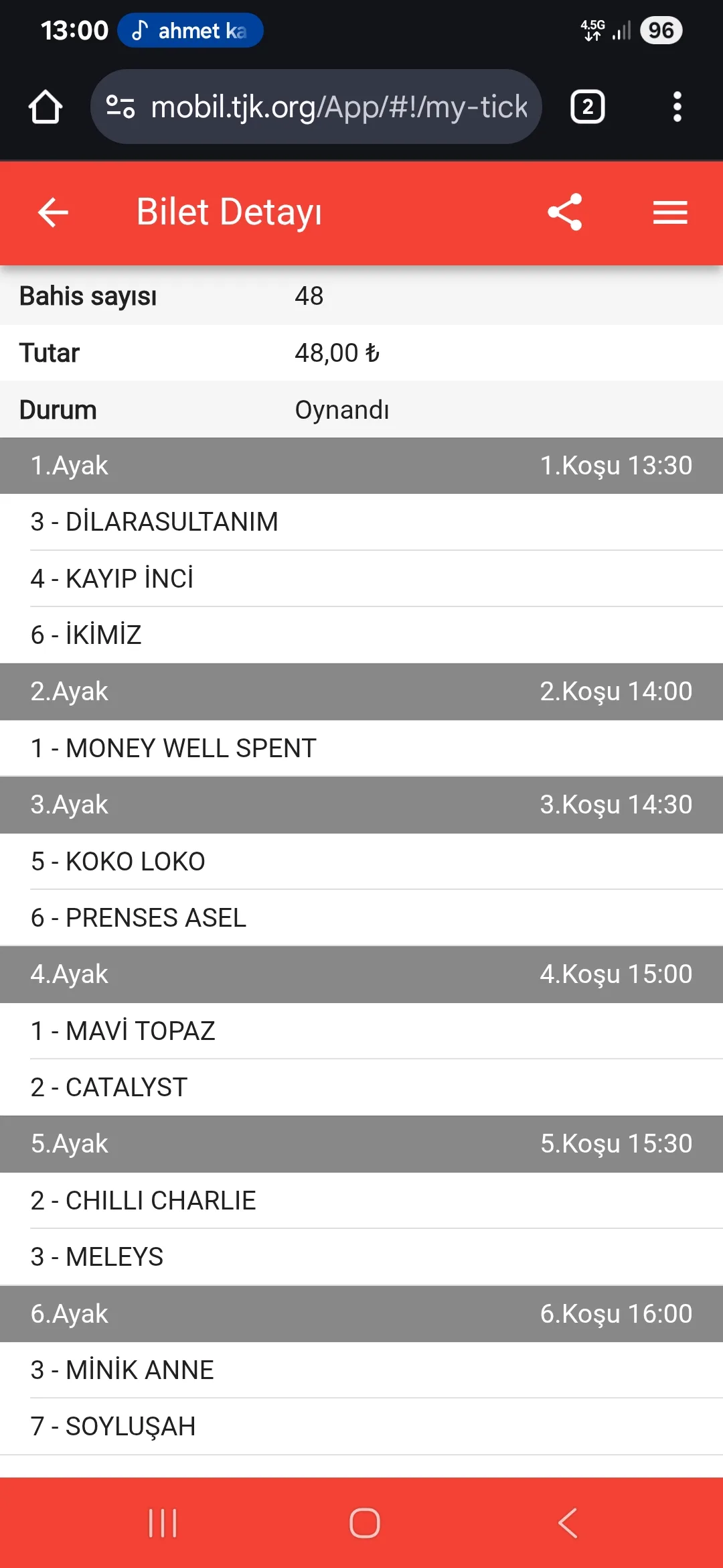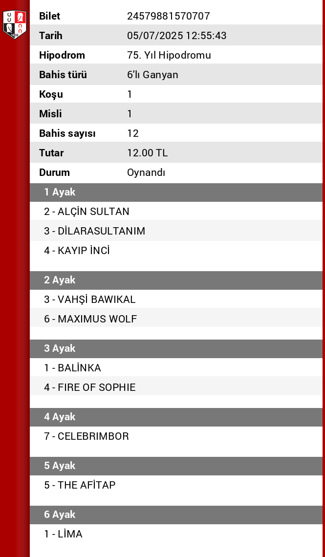 TJK Bilet Detayı