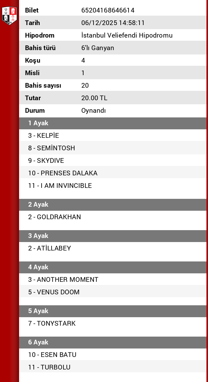 6.KOŞU: 1-BY TÜRKOĞLU ve 2-ATİLLABEY başta şans verdiğim isimler..5-SERT KALELİ , 2-FISTIK ÇAMI ve 4-RÜZGARSU diğer ihtimaller..8-İNZİBAT sürpriz..
