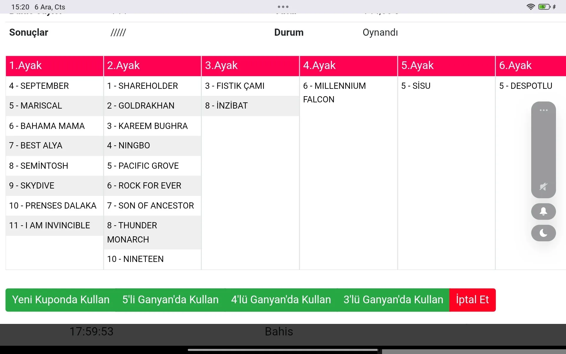 6-6-6-6 4 tane 6 altı geldi iyi para yaptı altılı. Adıma konuşuyorum böyle güzel program her zaman gelmez maalesef değerlendiremedim.