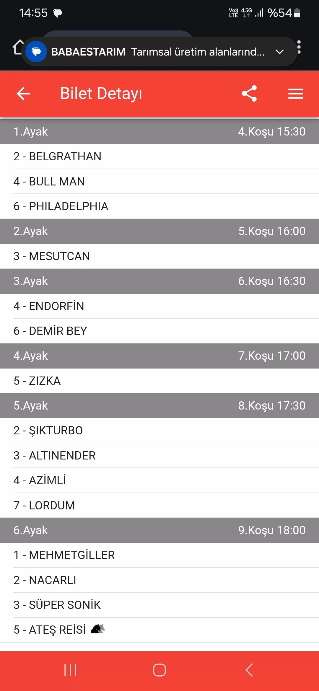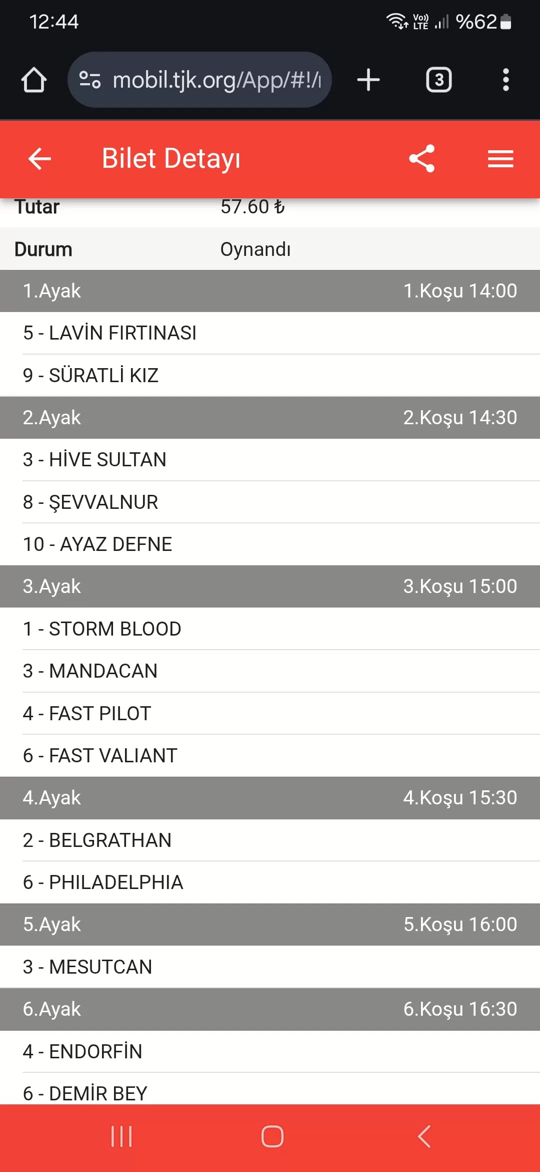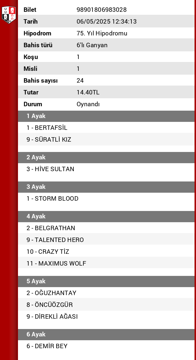 Bilet no 33670812244467 Bahis türü 6’lı Ganyan