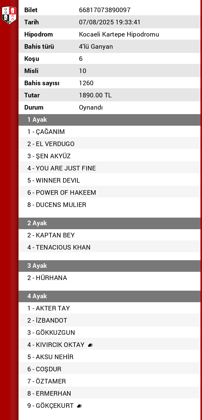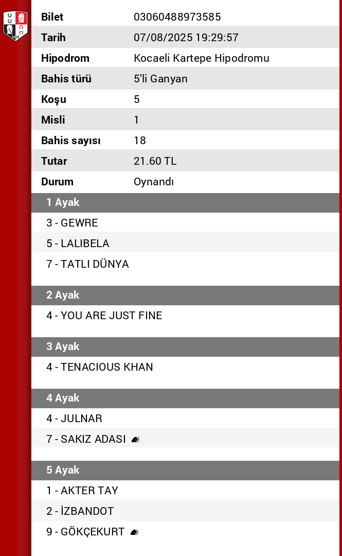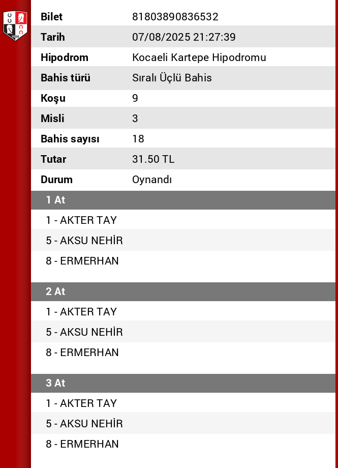 KOCAELİ/KARTEPE Hipodromundaki 9 Koşulu yarış programında herkese bol şanslar diliyorum.