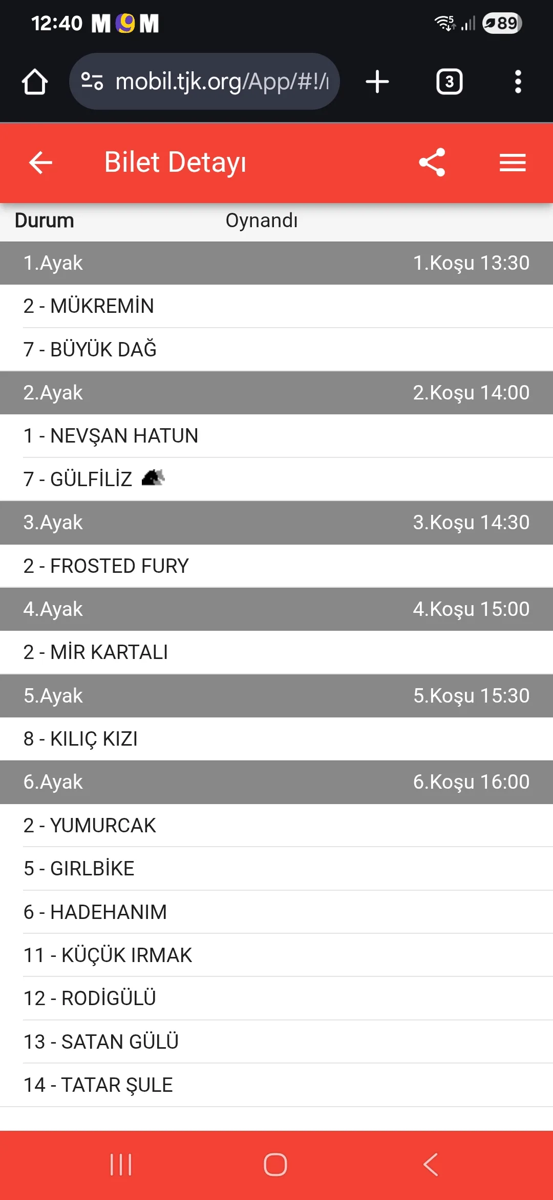 Bilet no 07787877680292 Bahis türü 6’lı Ganyan