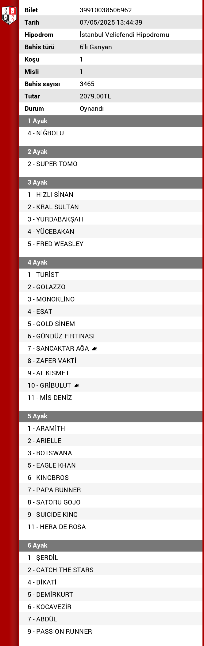 07 MAYIS 2025 ÇARŞAMBA İSTANBUL ALTILI TAHMİNLERİ (RISING)