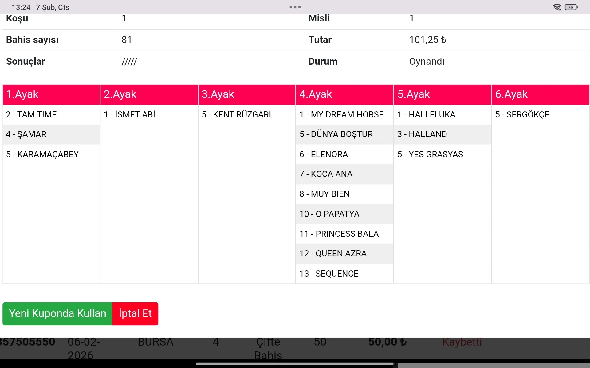 Çok çok Tebrikler 2.ci altılıyıda mislimi oynadin