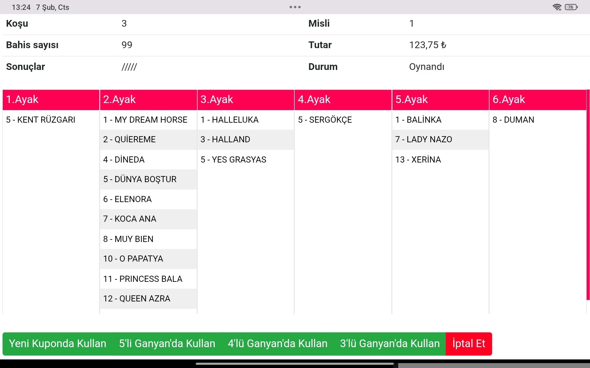 ADANA 3 KOŞU 6 LI(180,00TL)