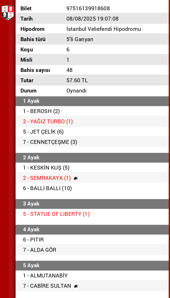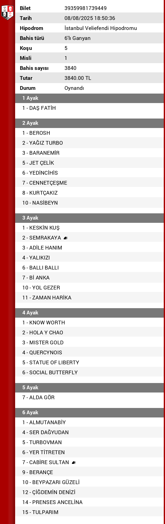 20 tl lik bende salladım altılı , size bol şans dileyeceğim ama ilk ayaktan gitmiş benimde şimdi yatar 3 tek :)