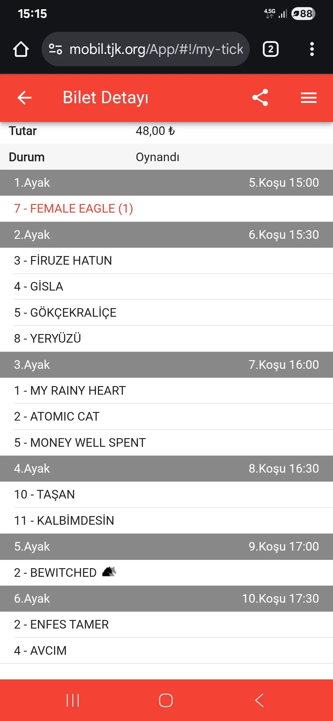 Atı kafamda uzun istiyor diye kodlamıştım bi de idmanda çok parlıyordu ama nihayetinde riskliydi kiloya güvendim biraz da şans işte