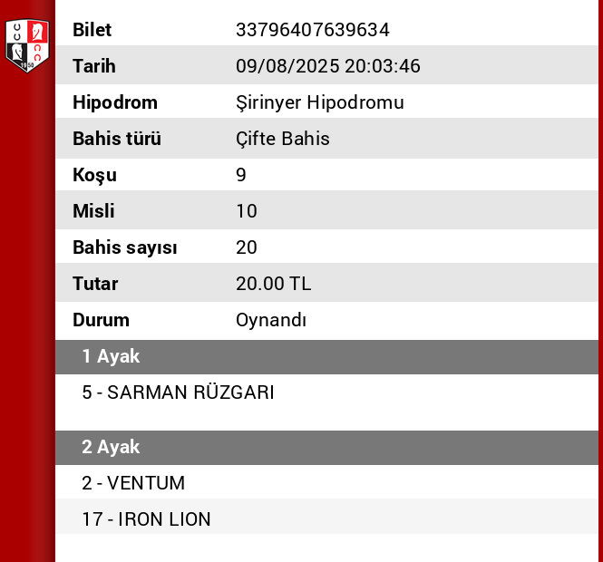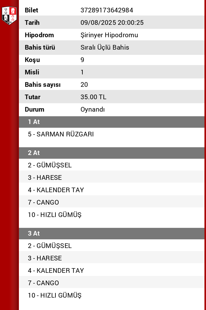 5.ayak benim at pistten çıkınca sonuca bakmamıştım :) Tebrikler Buca
