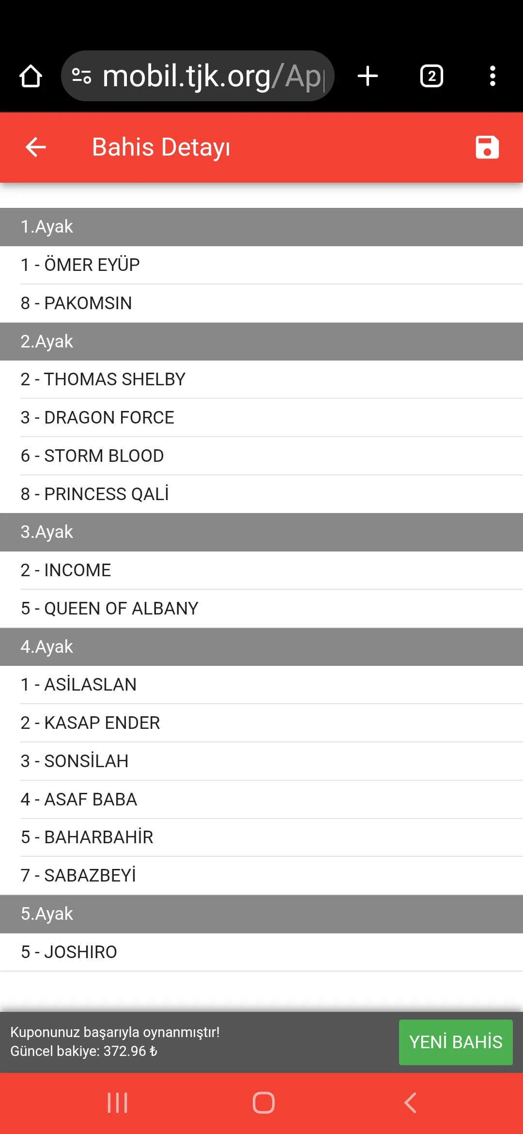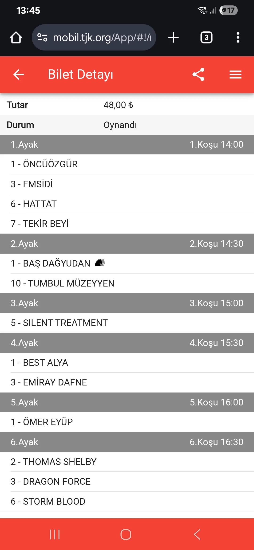 Bilet no 12286690876162 Bahis türü 6’lı Ganyan