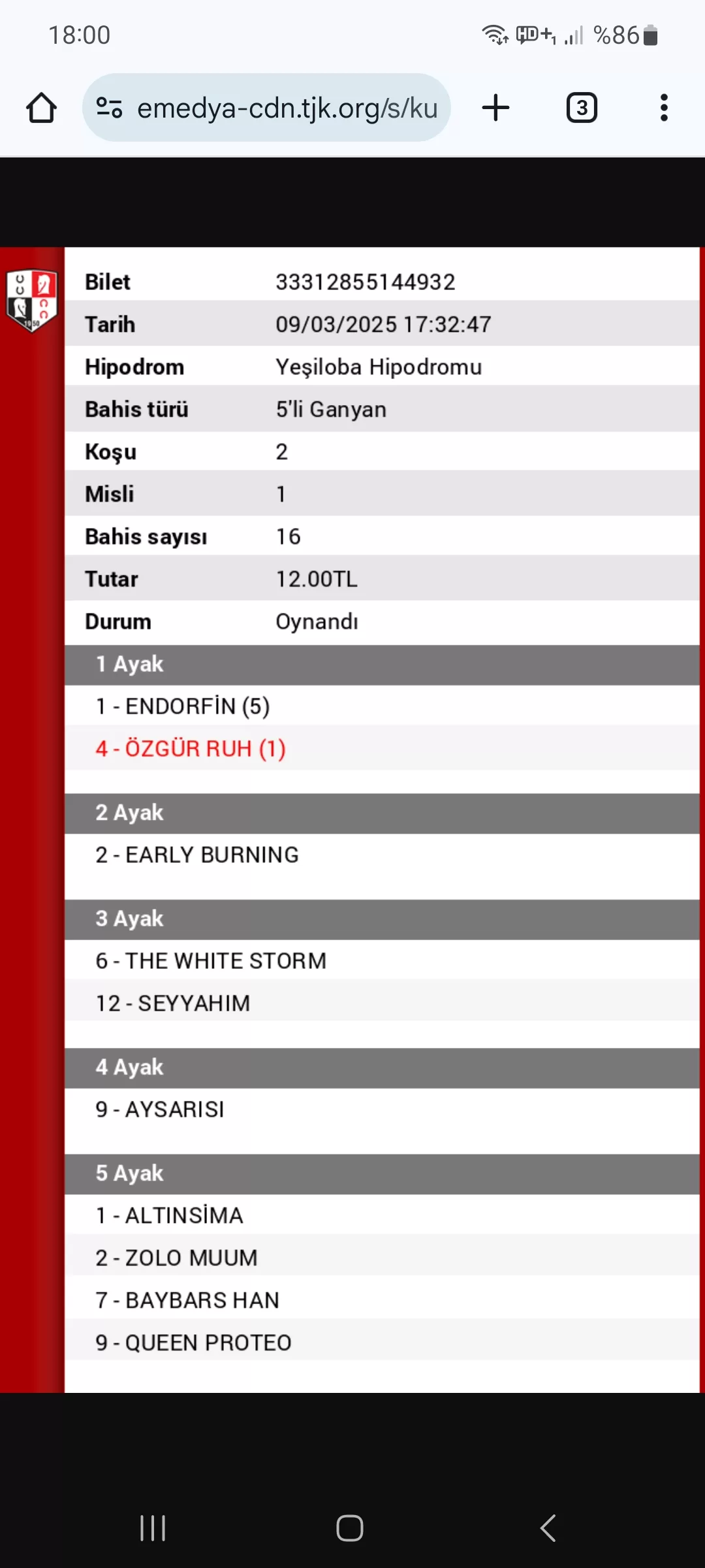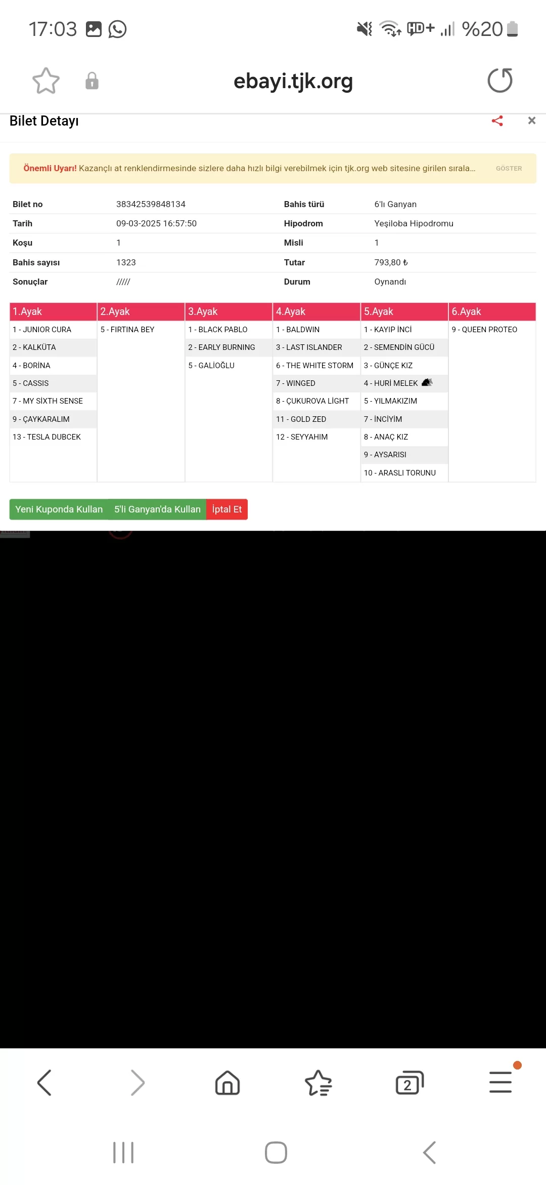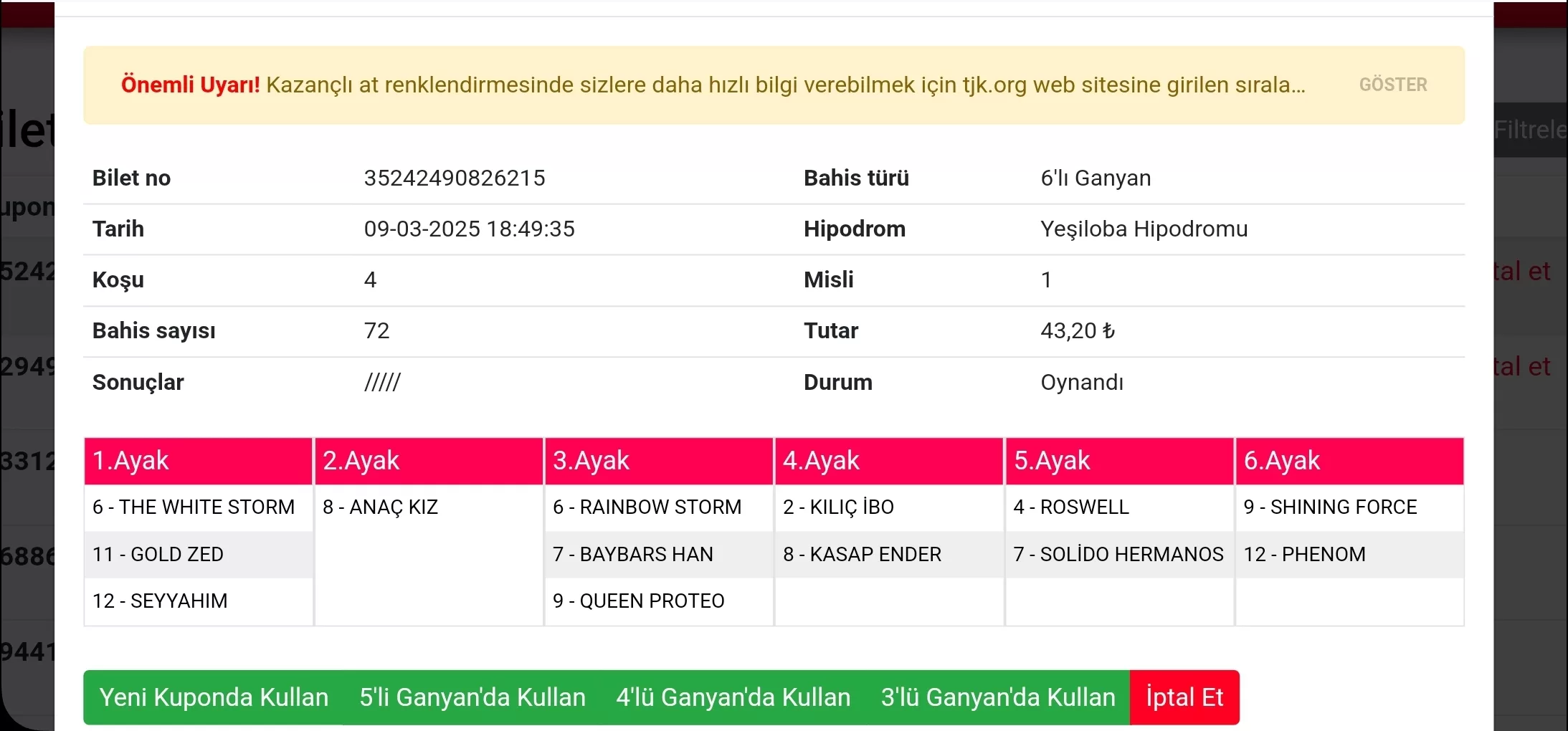 Misli 4 lüler, çifte, ikililer, hepsi çöp oldu. Birisinin atı starta girmez altılı yatar, birileri starttan çıkmaz.