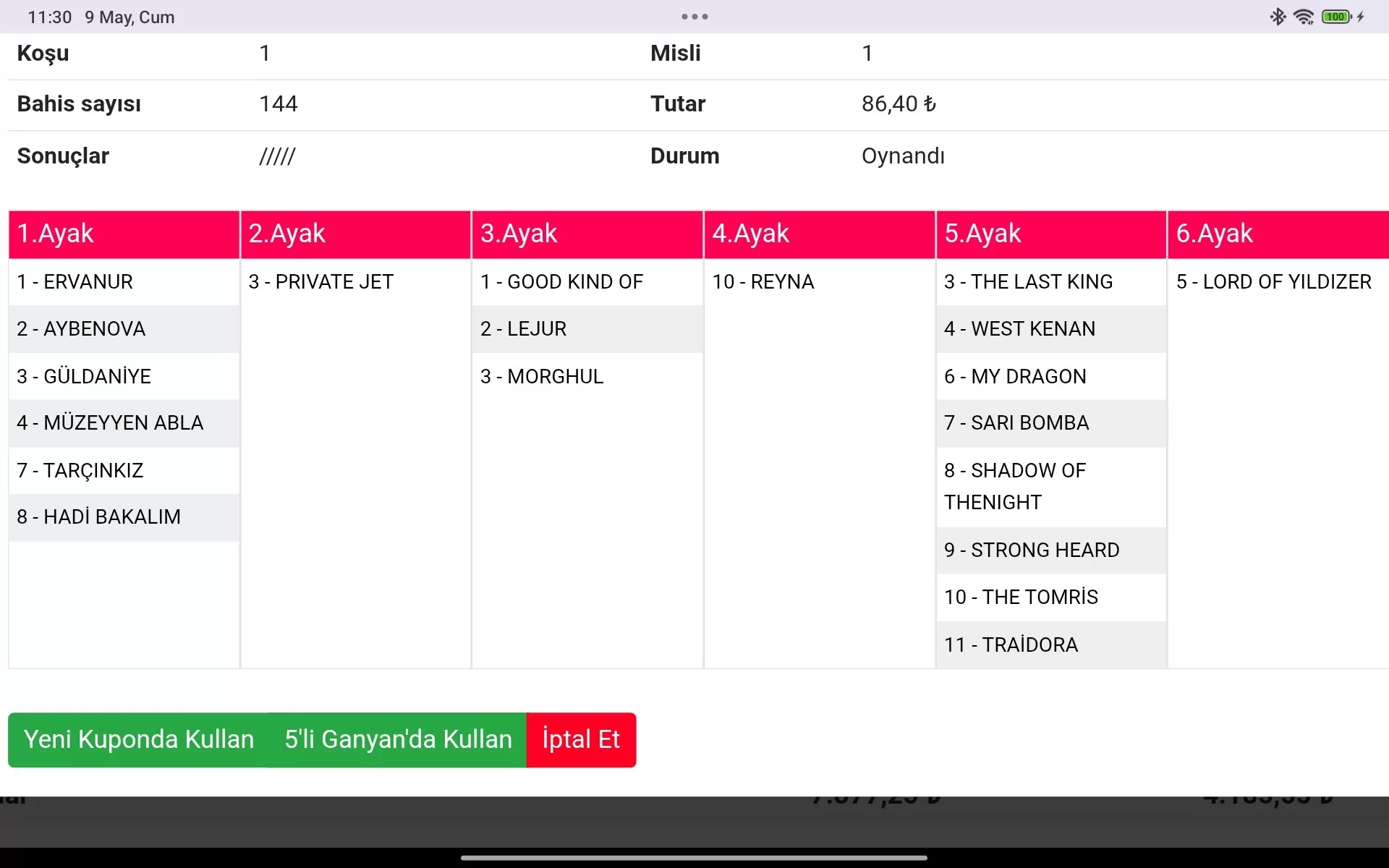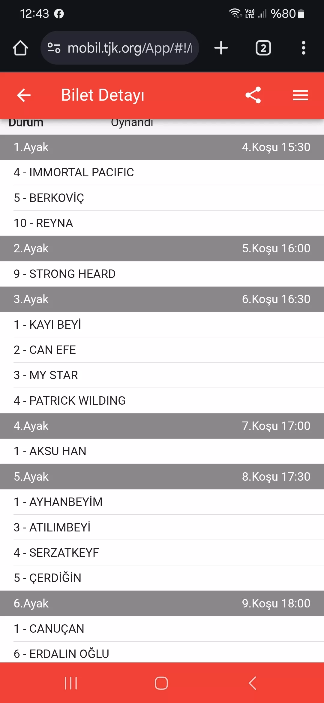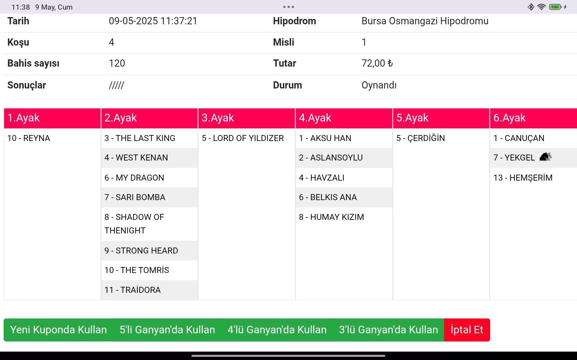 Bilet no 27802094340774 Bahis türü 6’lı Ganyan
