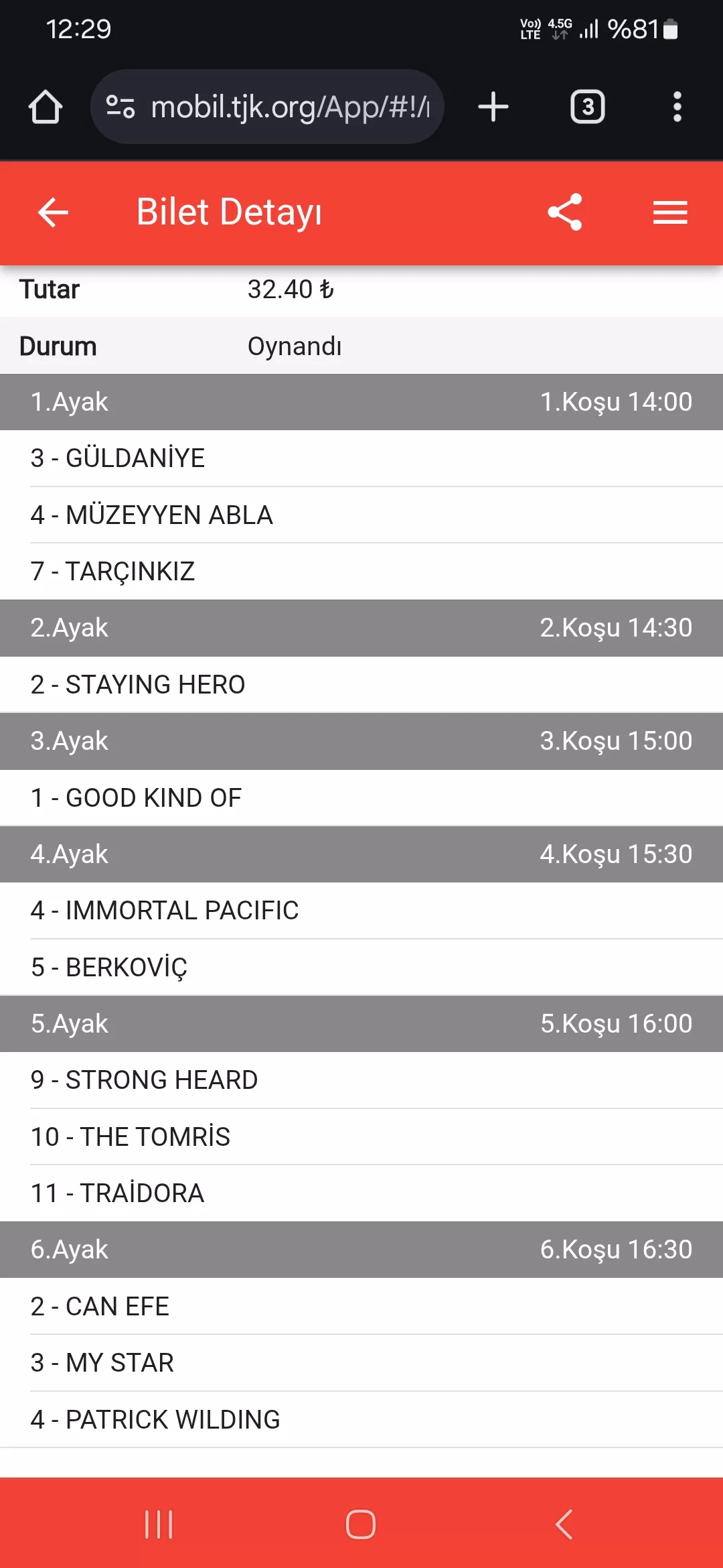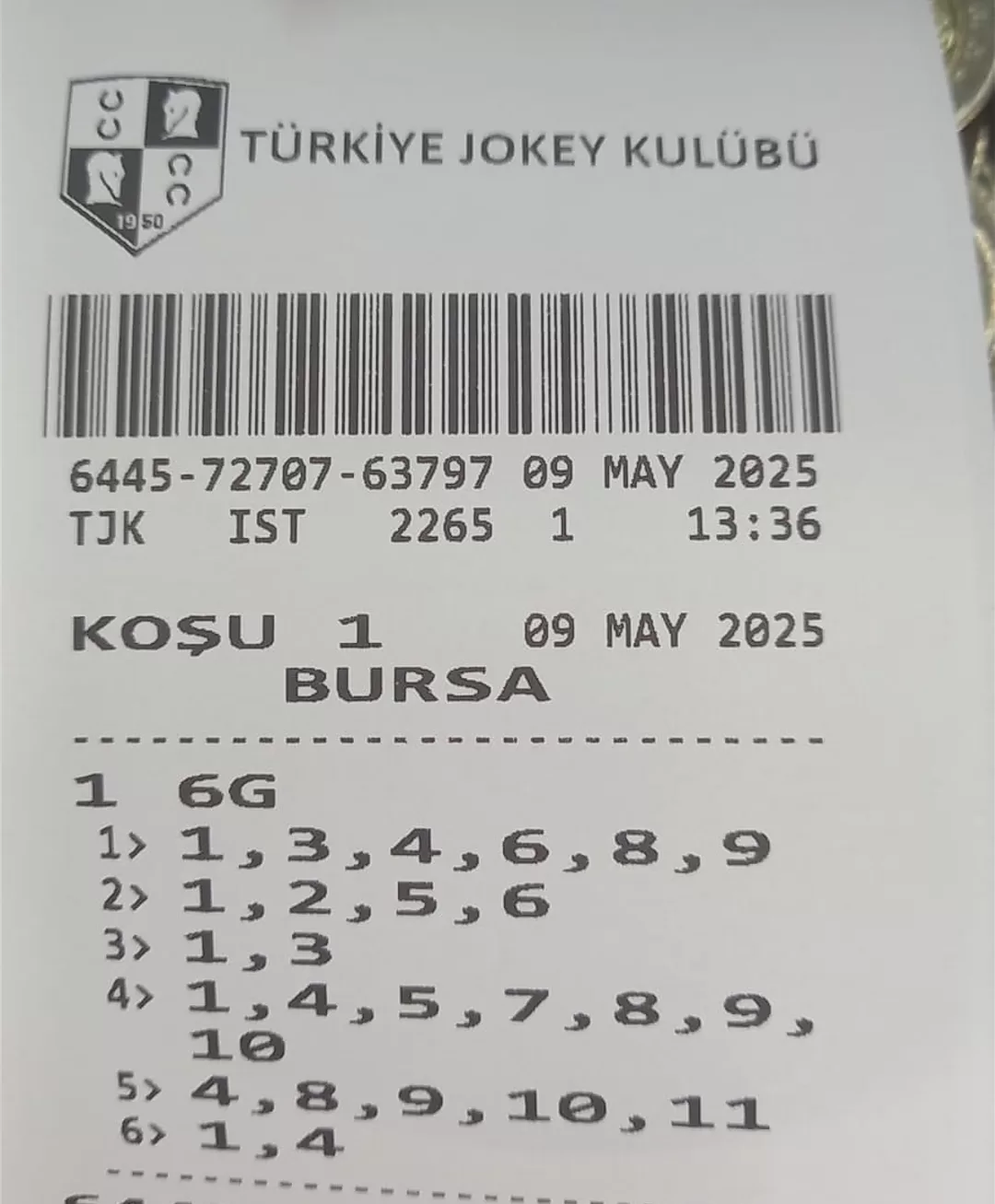 Bilet no 63331903206455 Bahis türü 6’lı Ganyan