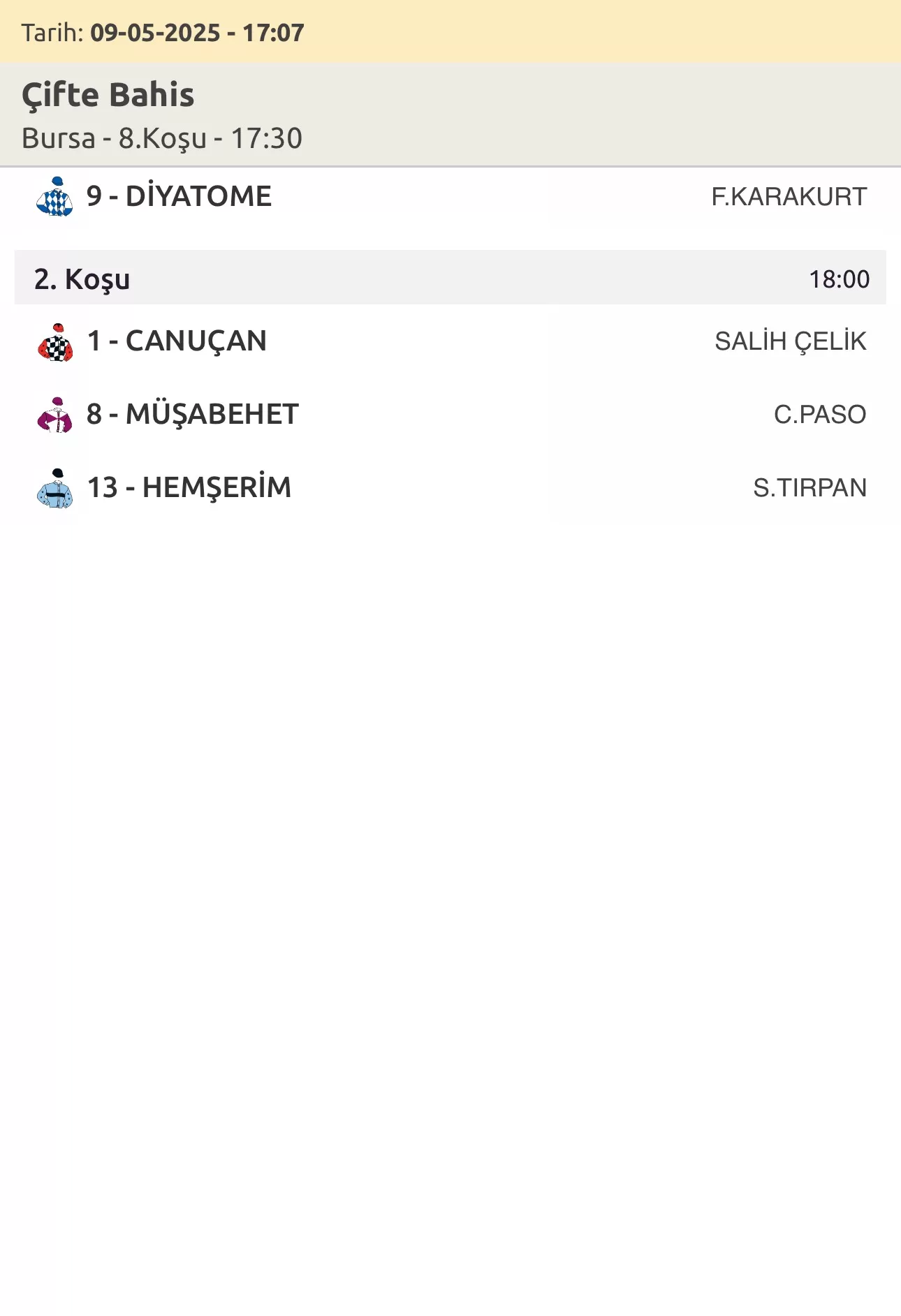 Tarih 09-05-2025 13:00:29 Hipodrom Bursa Osmangazi Hipodromu