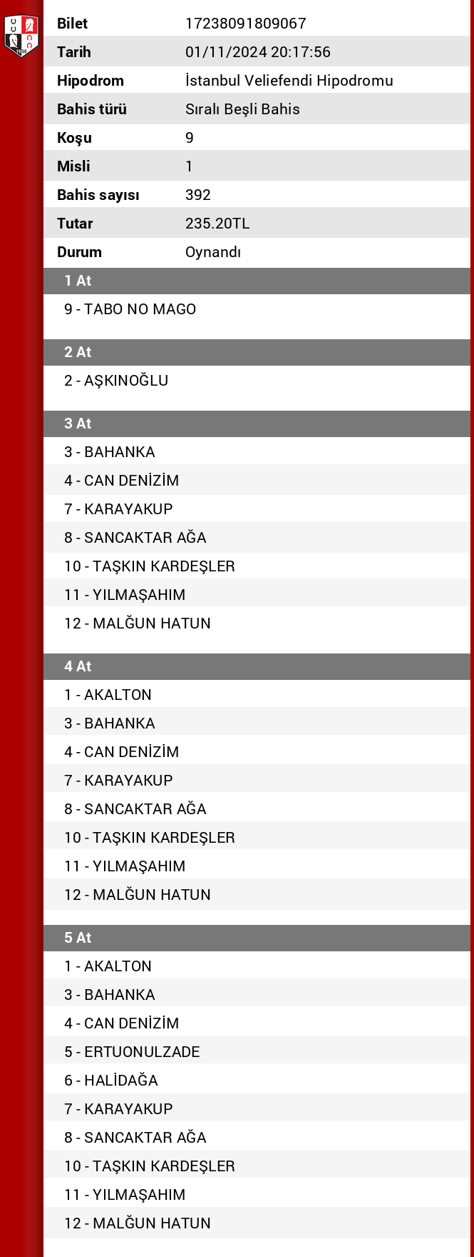 Bu sayfadaki renklendirme ile Merkezi Bahis Sistemi kayıtları arasında bir tutarsızlık olması durumunda, renklendirme bilet kazanç durumuna etki etmez ve Merkezi Bahis Sistemi kayıtları esas alınır.