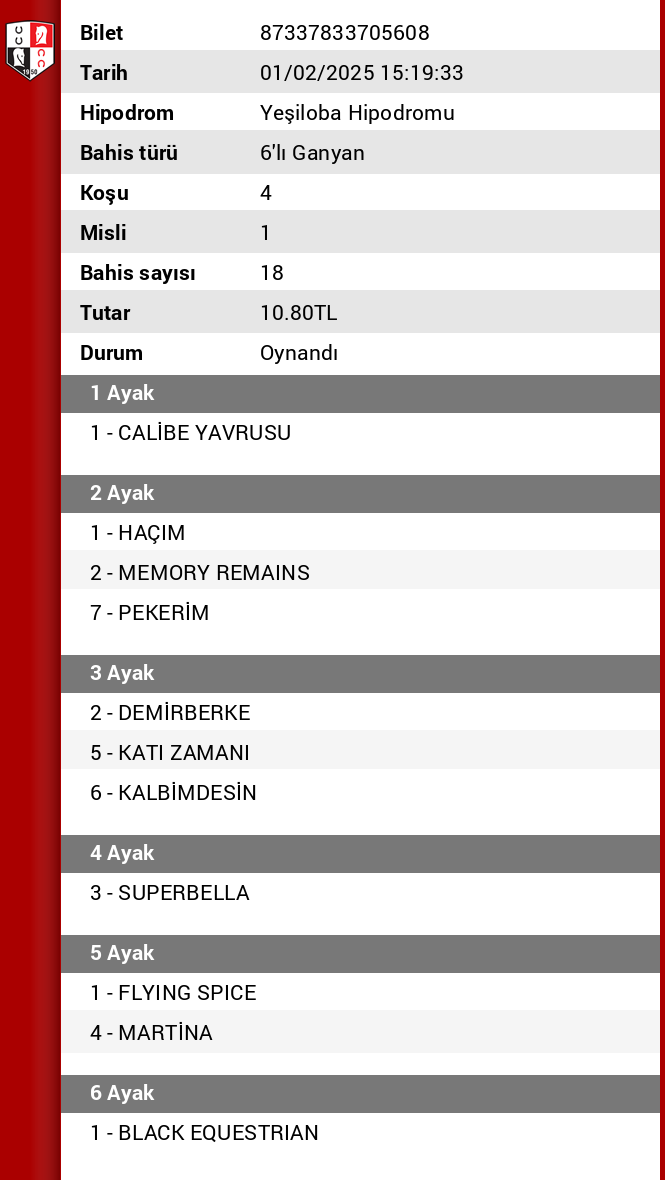 6.AYAK: Zor bir koşu, kime baksam yeterli gözüküyor. 1 BLACK EQUESTRIAN’ın son 2.liğindeki düzlük performansını beğendim, sermayeli bitirdi koşuyu. Tek deneyeceğim.