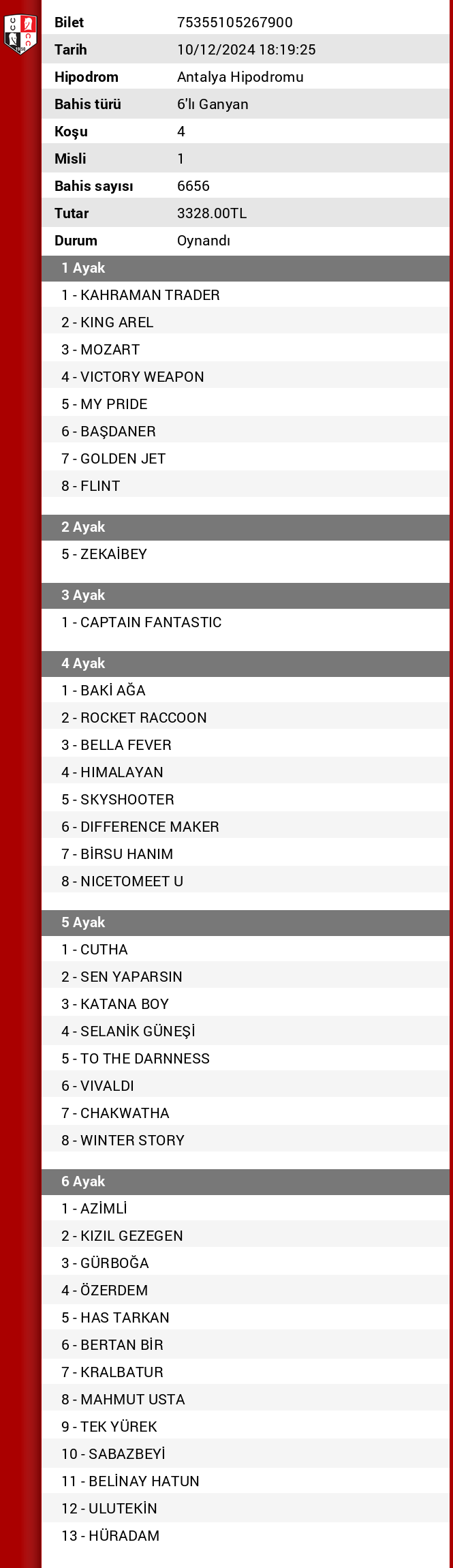 10 ARALIK ANTALYA ALTILI TAHMİNLERİ (FATİH)