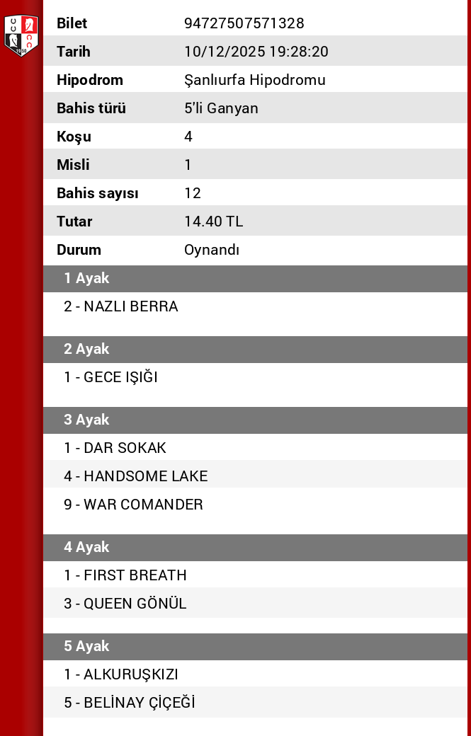 4.KOŞU : 2 NAZLI BERRA geçen yaktı bizi ama tekrar deneyeceğim başka isim yok gibi