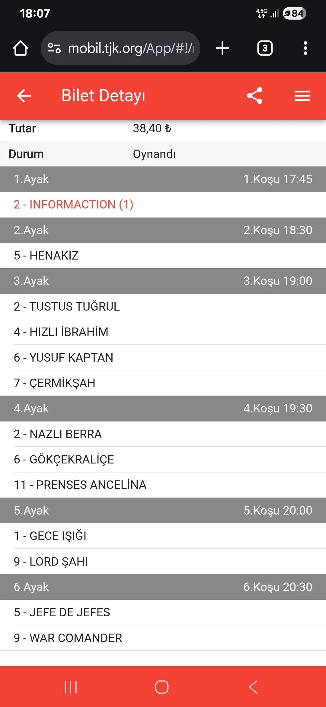 2.KOŞU : Aslında burası kapatmalık ama ben 5 HENAKIZ la şansımı deneyeceğım burda da kazanamazsa bu at zerre kazanamaz