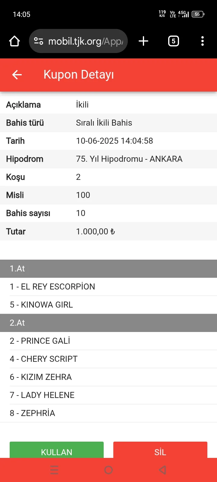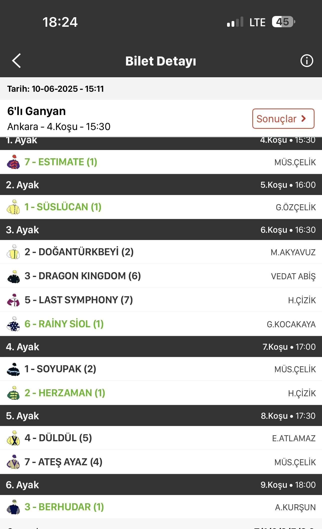 TJK Bilet Detayı