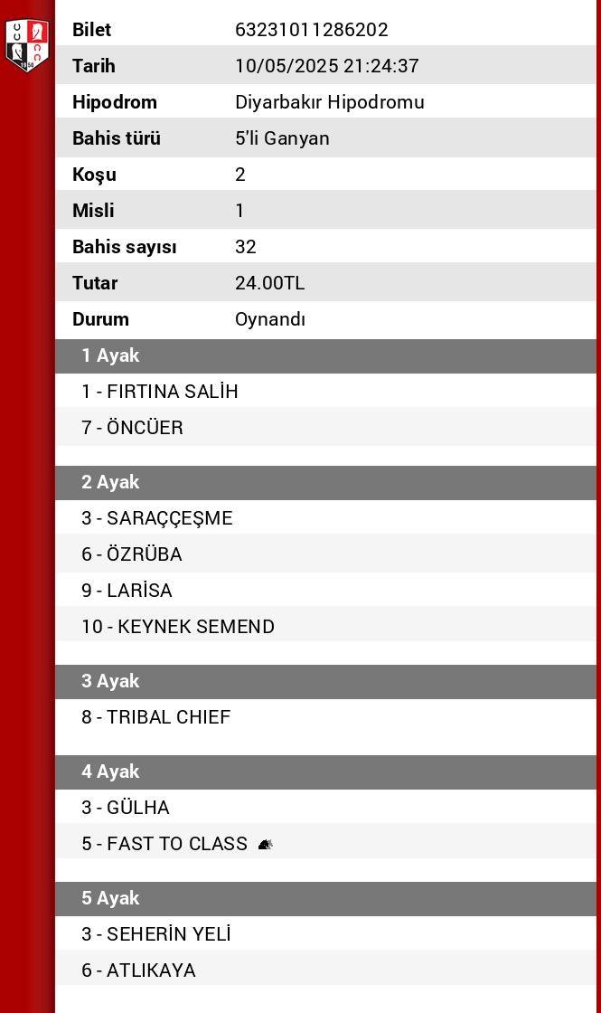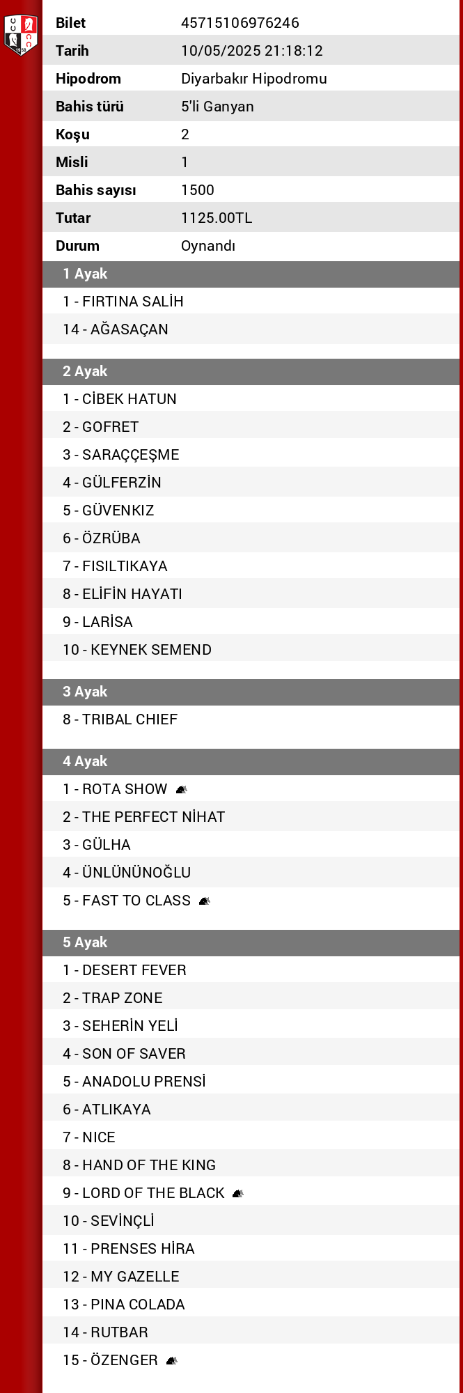 1.AYAK : 5 KARAPINAR ASLANI son yarış tek vermiştim aslında kapatmalık ama isteyen denesin yoksa 5liye kaçın