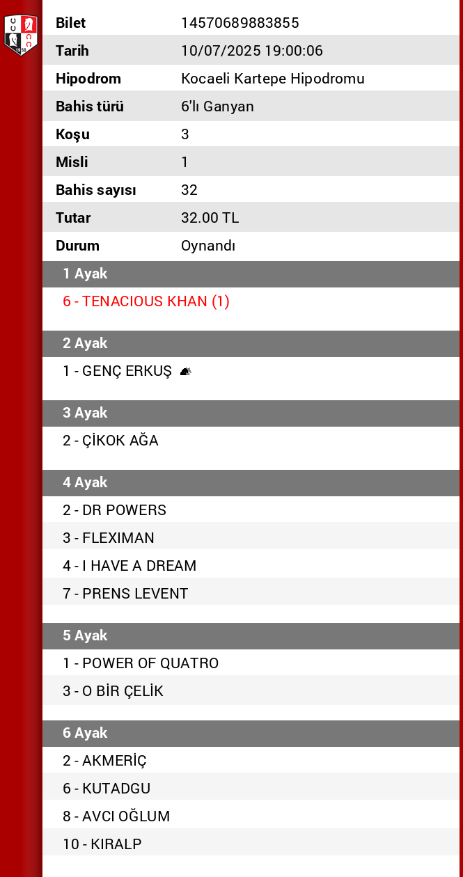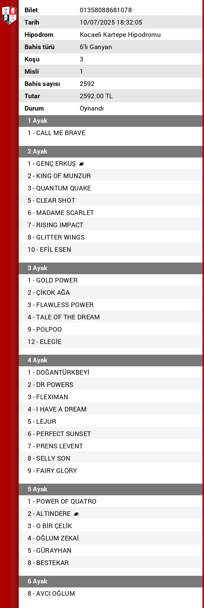 1.KOŞU: 6 – 4 – 3 – 8 – 9 – 7 – 2