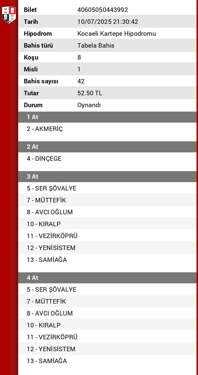 8 Koşulu KOCAELİ at yarışlarında herkese bol şanslar diliyoruz.