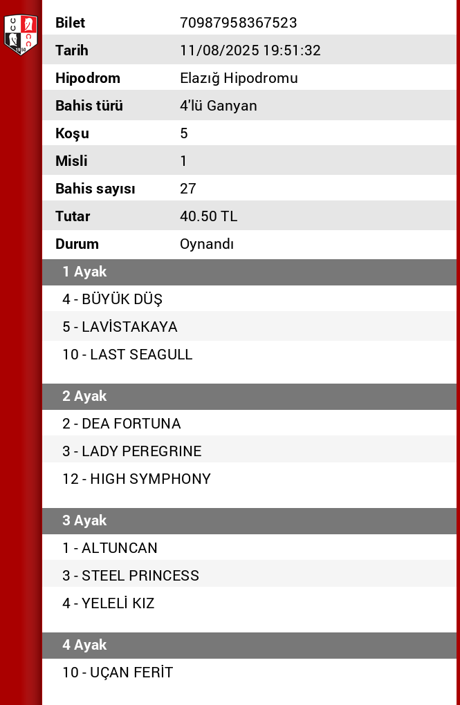 Bahis sayısı 220 Tutar 176,00 ₺